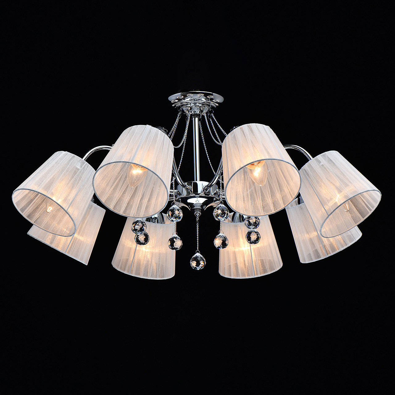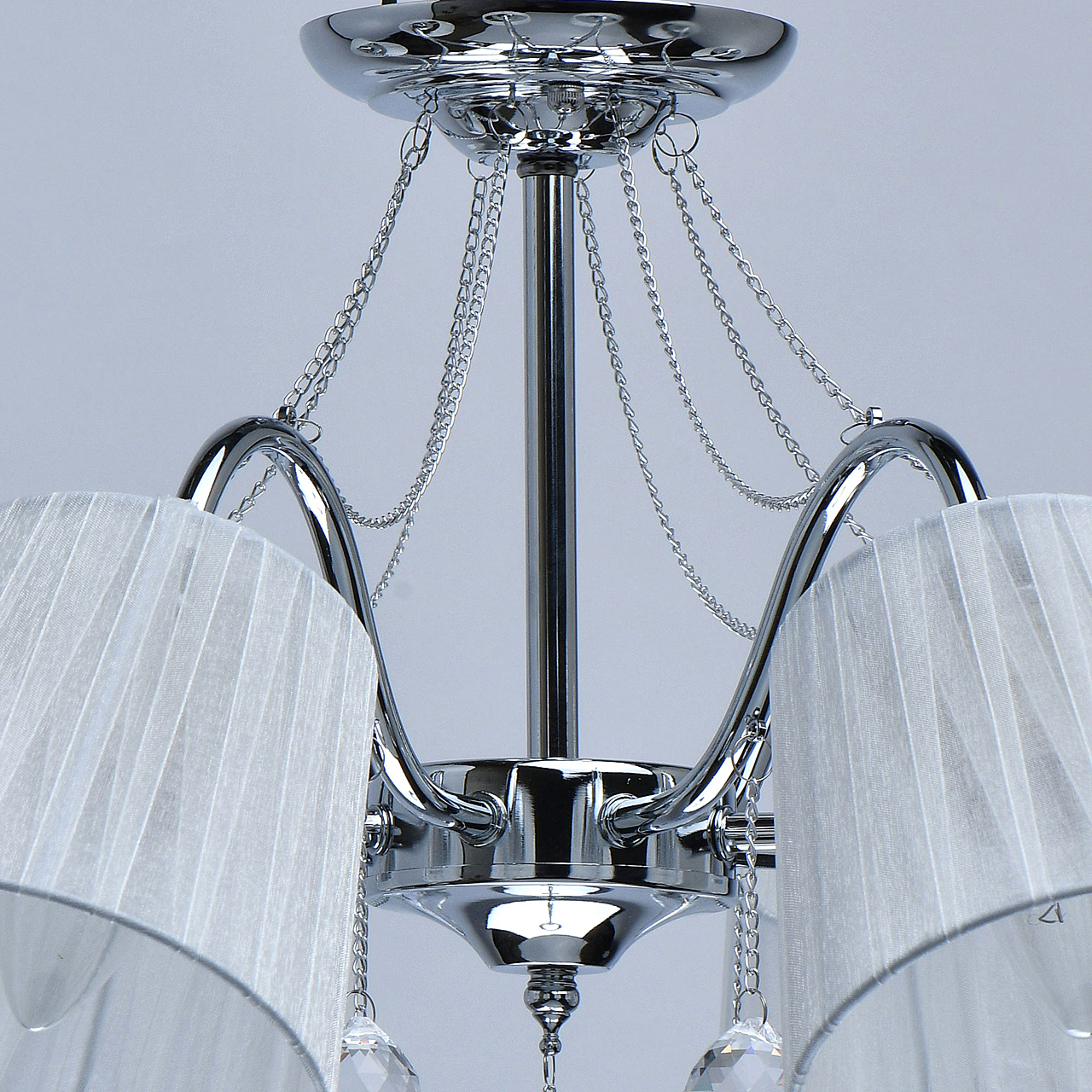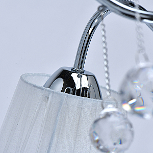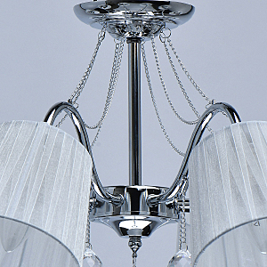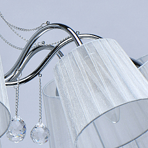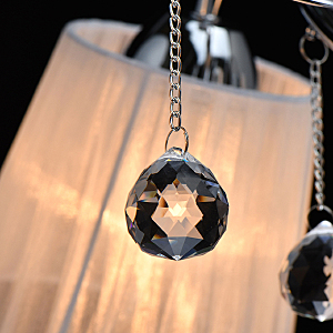 Современный дизайн и универсальный оттенок плафонов актуальны для большинства интерьеров.Хрустальные подвесы на декоративных цепочках добавляют легкости моделиАбажуры из многослойной органзы отлично пропускают свет.Широкий диаметр конструкции обеспечивает высокие параметры освещенности