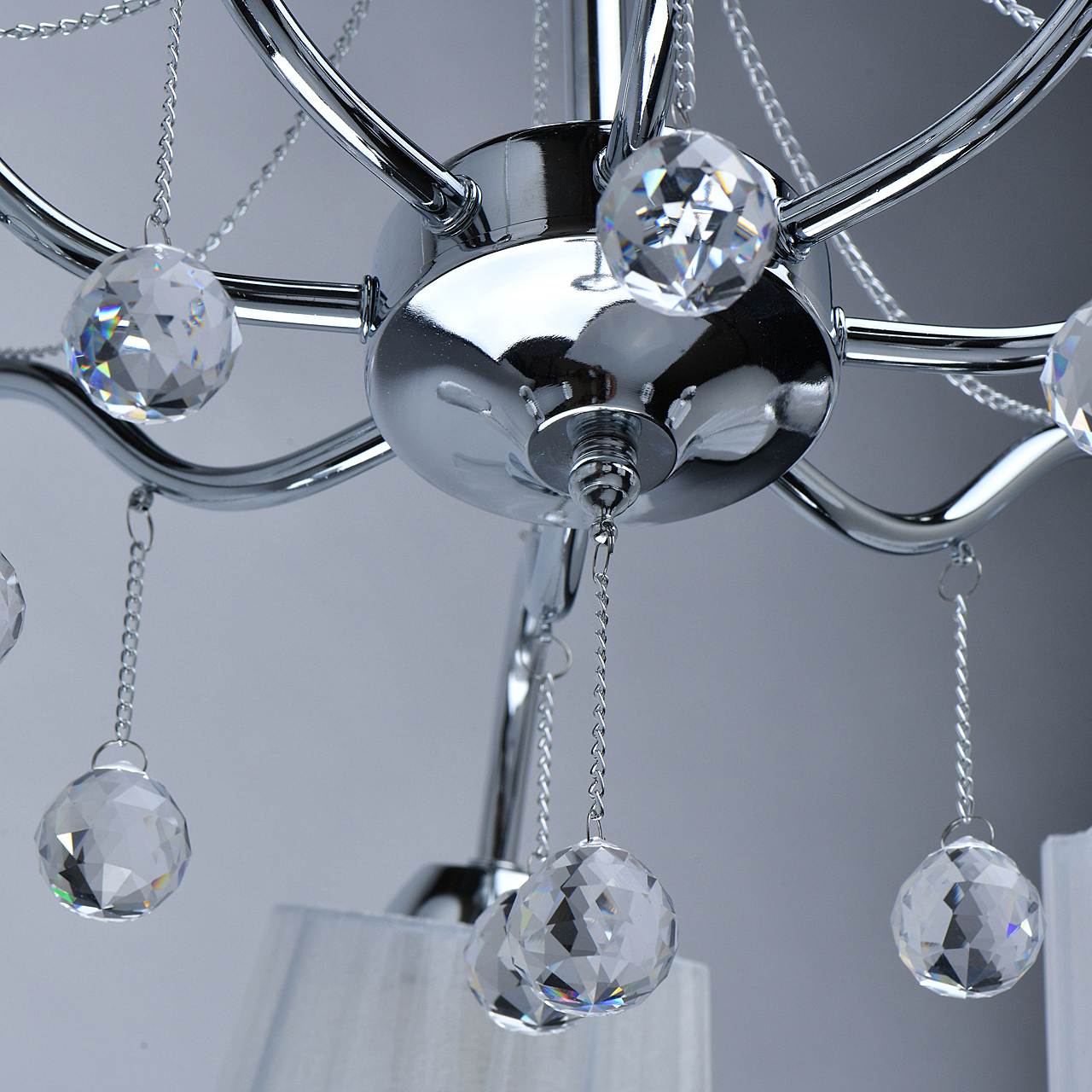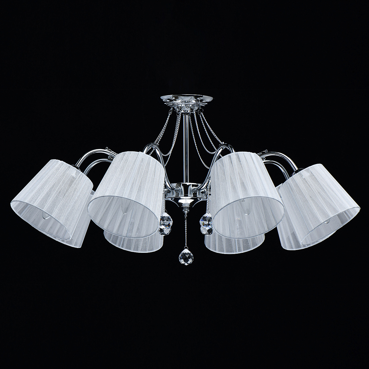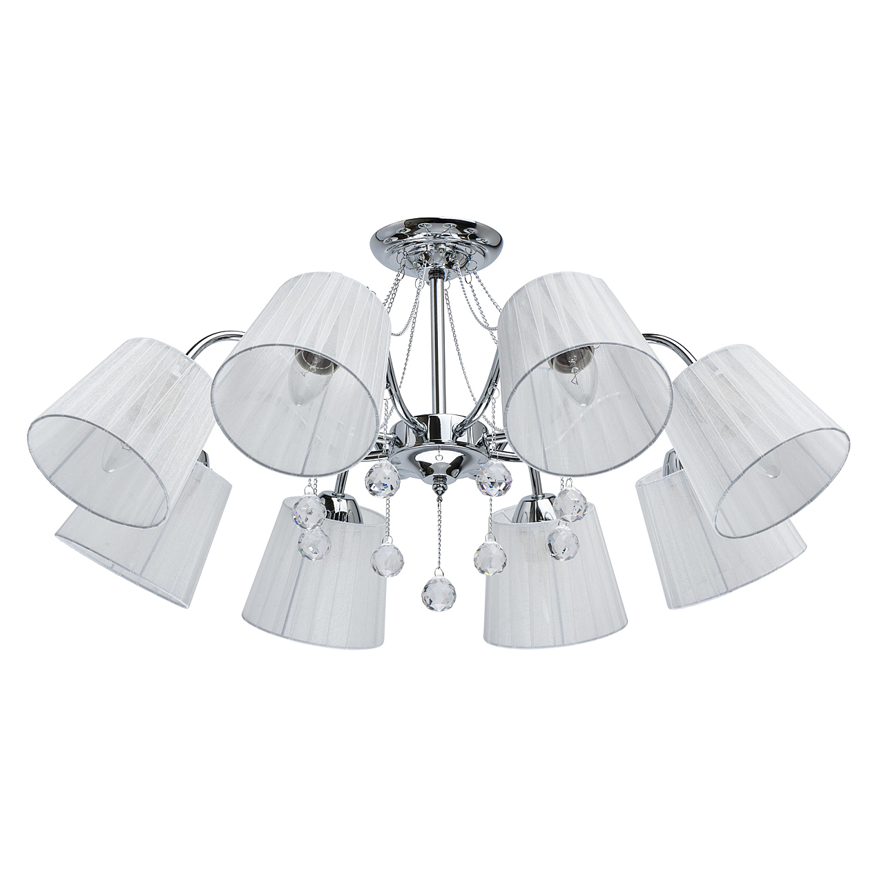 Современный дизайн и универсальный оттенок плафонов актуальны для большинства интерьеров.Хрустальные подвесы на декоративных цепочках добавляют легкости моделиАбажуры из многослойной органзы отлично пропускают свет.Широкий диаметр конструкции обеспечивает высокие параметры освещенности