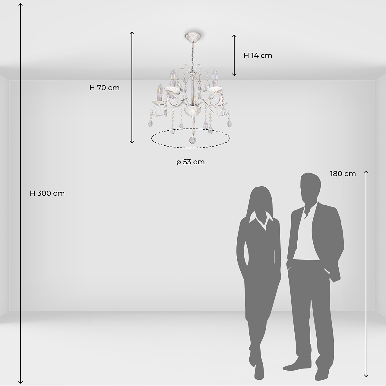 Допускается отличие страны-изготовителя, указанной в характеристиках. Линии производства могут находиться в нескольких государствах. Это не влияет на качество изготовления товара: все заводы данного бренда работают по общим стандартам, а готовые изделия проходят соответствующий контроль.Германия Коллекция Лада ЦветЦвет арматуры Белый Цвет Белый Материал арматуры Металл РазмерыВысота (мм) 700 Диаметр (мм) 530 Высота минимальная (мм) 700 Ширина (мм) 530 ЭлектрикаКоличество ламп (шт) 5 Цоколь E14 Тип лампы Накаливания Лампочки в комплекте Нет в комплекте Мощность лампы (Вт) 60 Общая мощность (Вт) 300 Площадь освещения 15 Дополнительная информацияСпособ крепления Крюк Вес (Кг) 1,8 Тип подвеса На цепи -