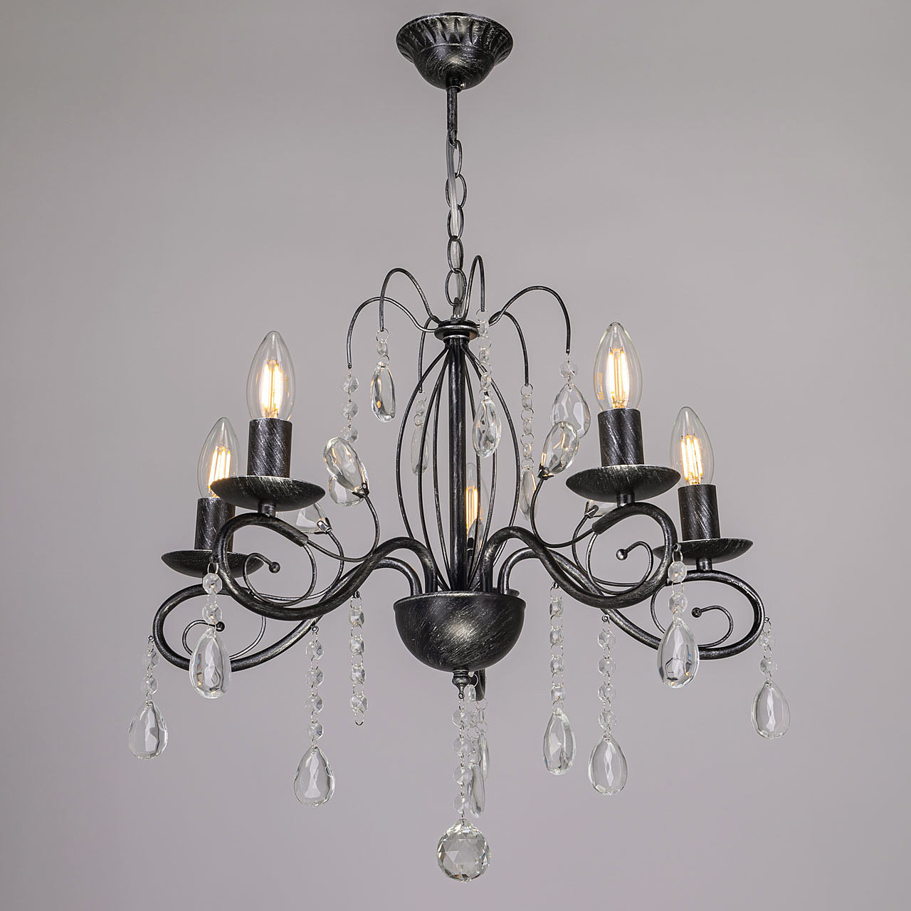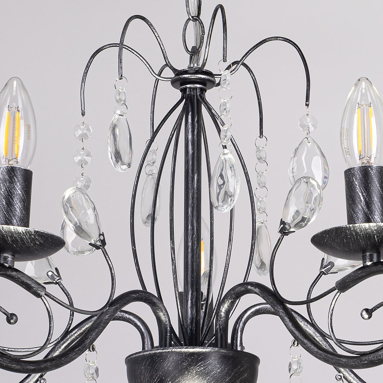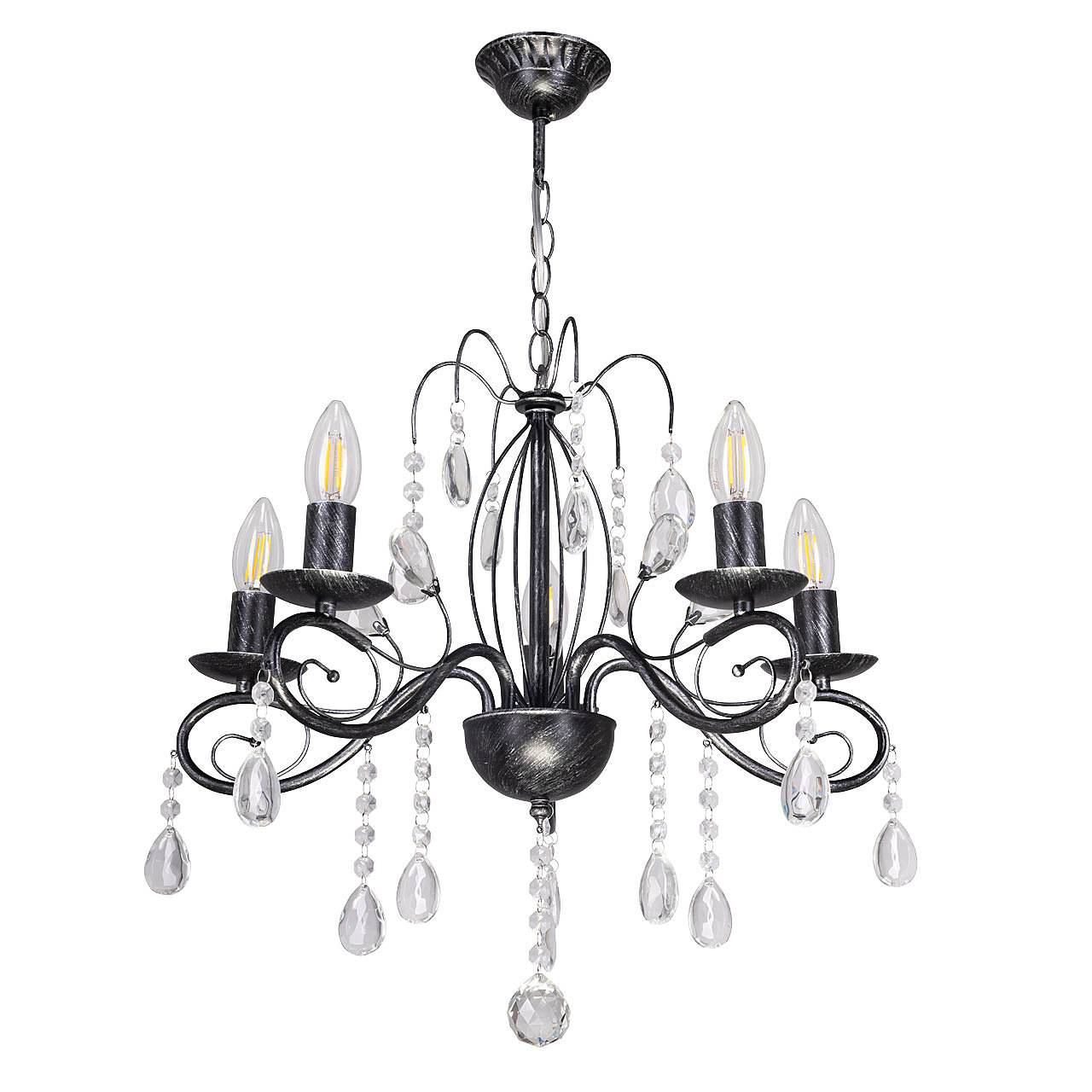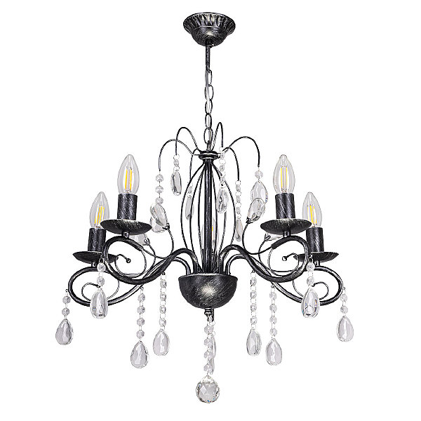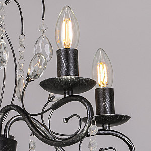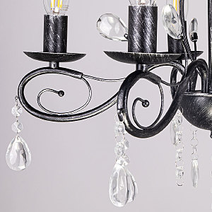 Классический дизайн подвесной люстры остается актуальным. Черный цвет основания с серебряной патиной делает подвесную люстру интерьерообразующей. Открытые источники света хорошо освещают все пространство комнаты. Заменяемые лампы удобны в эксплуатации.