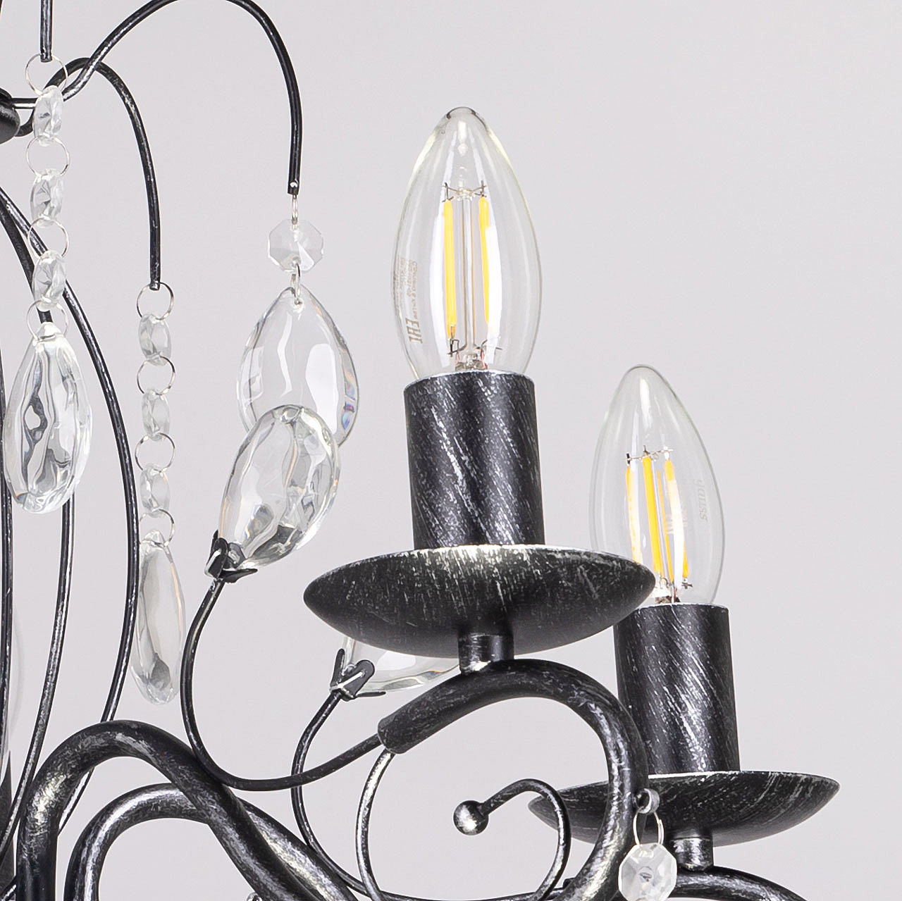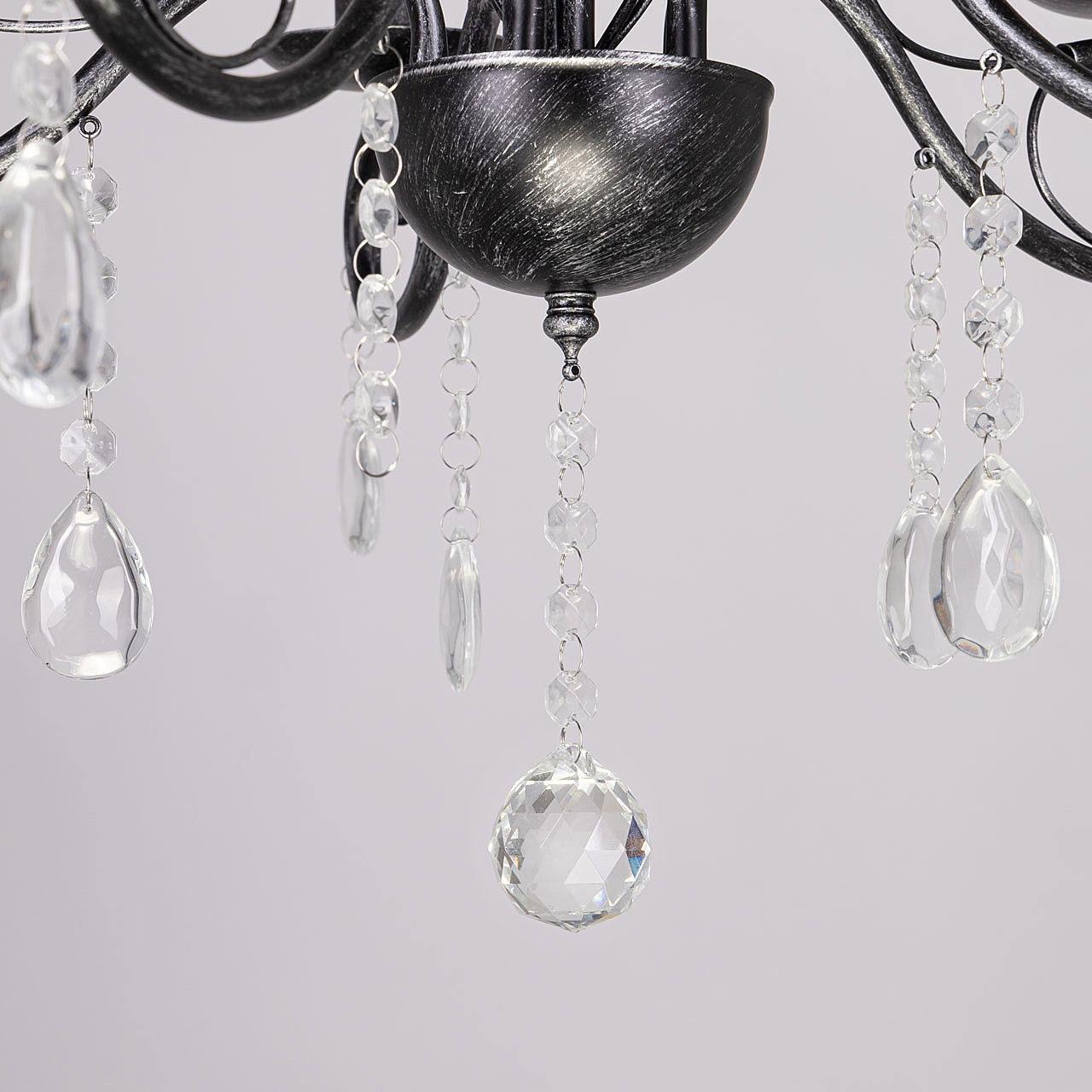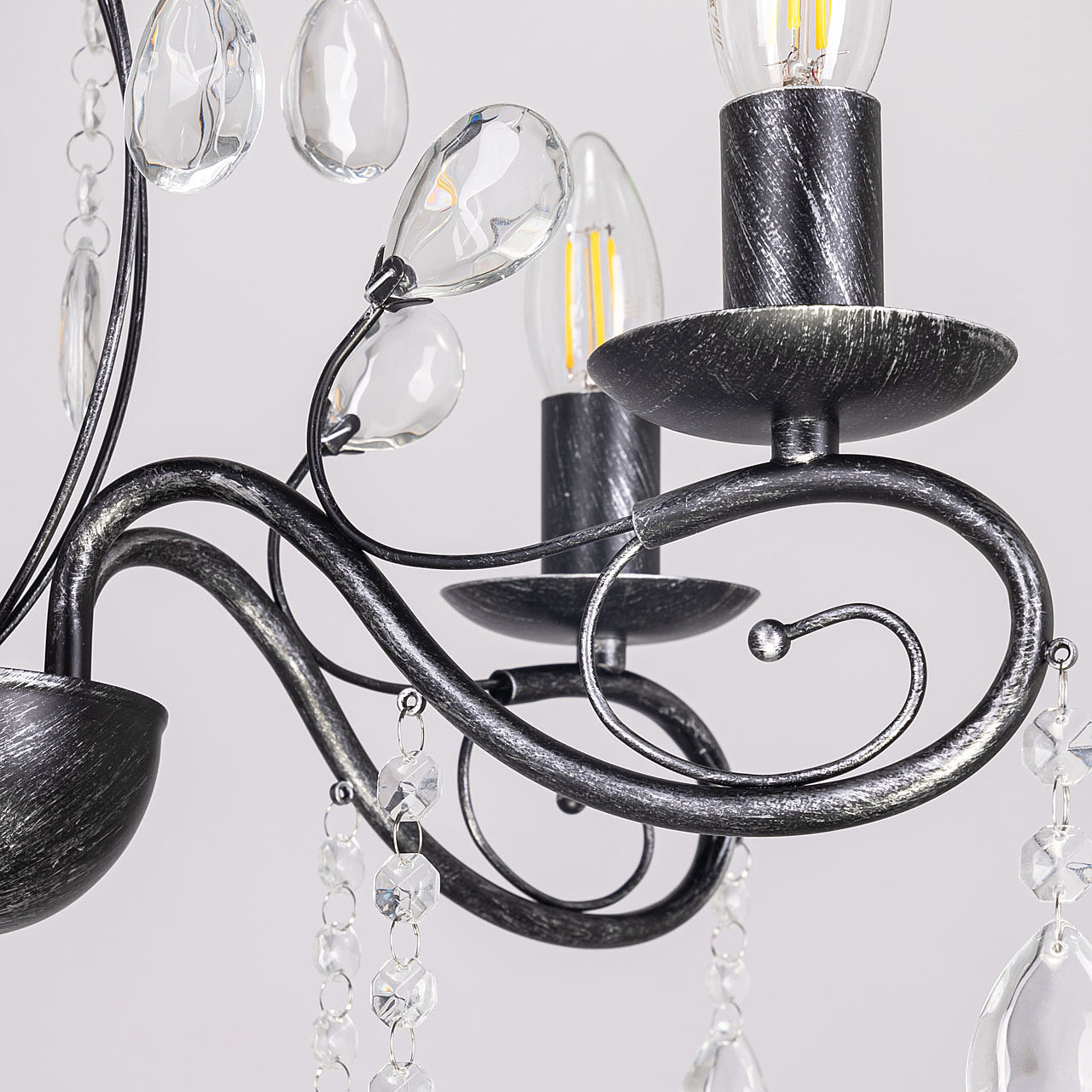 Классический дизайн подвесной люстры остается актуальным. Черный цвет основания с серебряной патиной делает подвесную люстру интерьерообразующей. Открытые источники света хорошо освещают все пространство комнаты. Заменяемые лампы удобны в эксплуатации.