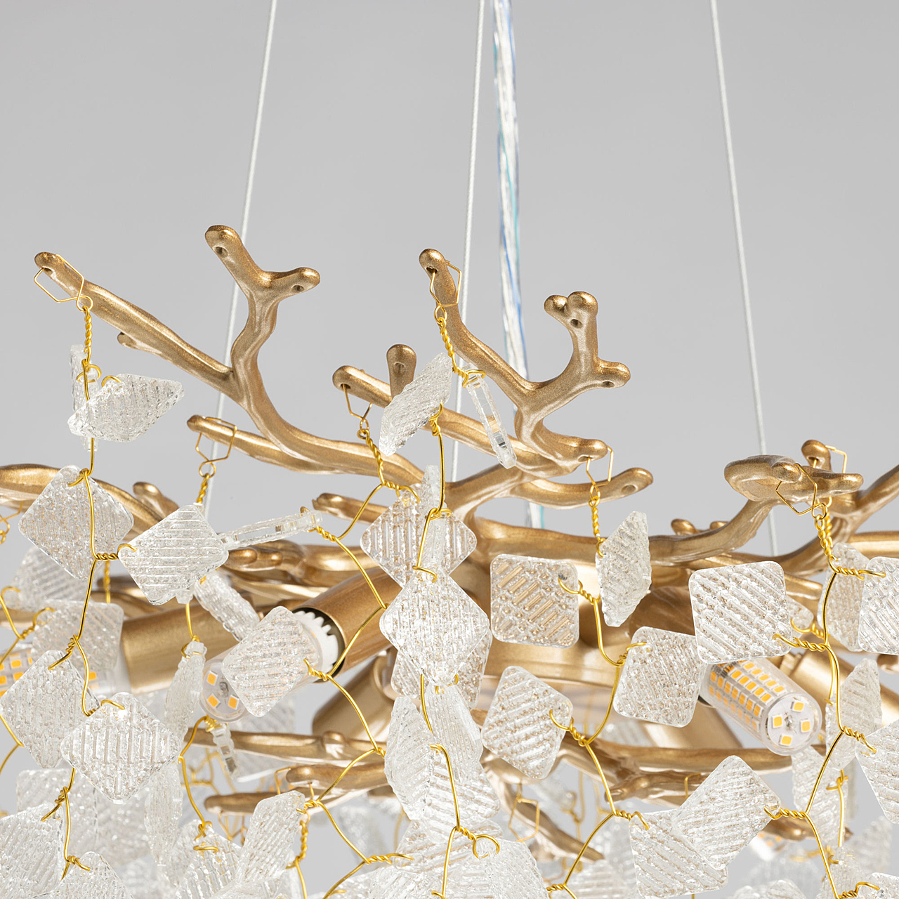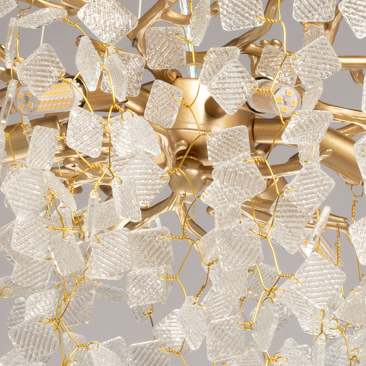 Современный дизайн с природными мотивами. Трендовая флористика, природа в доме. Декор в виде гроздьев из фактурного стекла придает светильнику индивидуальность. Заменяемые источники света удобны в эксплуатации. Возможность регулировки высоты светильника позволяет создать комфортные условия освещения.