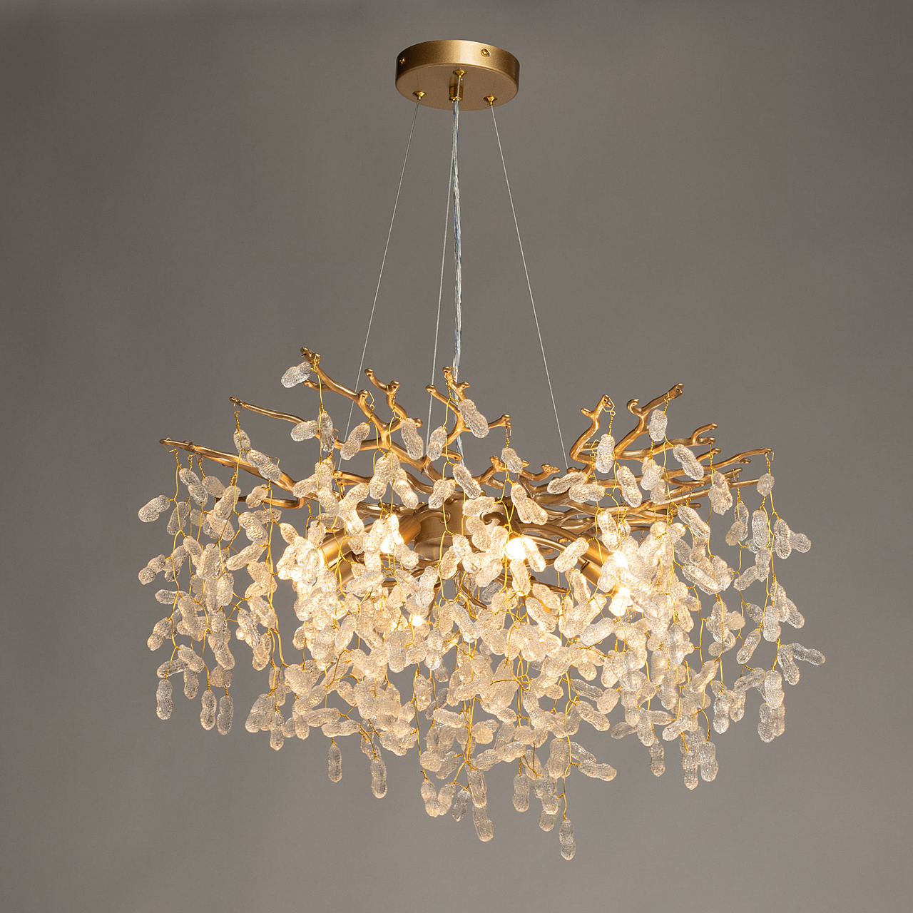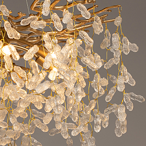 Современный дизайн с природными мотивами. Трендовая флористика, природа в доме. Декор в виде гроздьев из фактурного стекла придает светильнику индивидуальность. Заменяемые источники света удобны в эксплуатации. Возможность регулировки высоты светильника позволяет создать комфортные условия освещения.