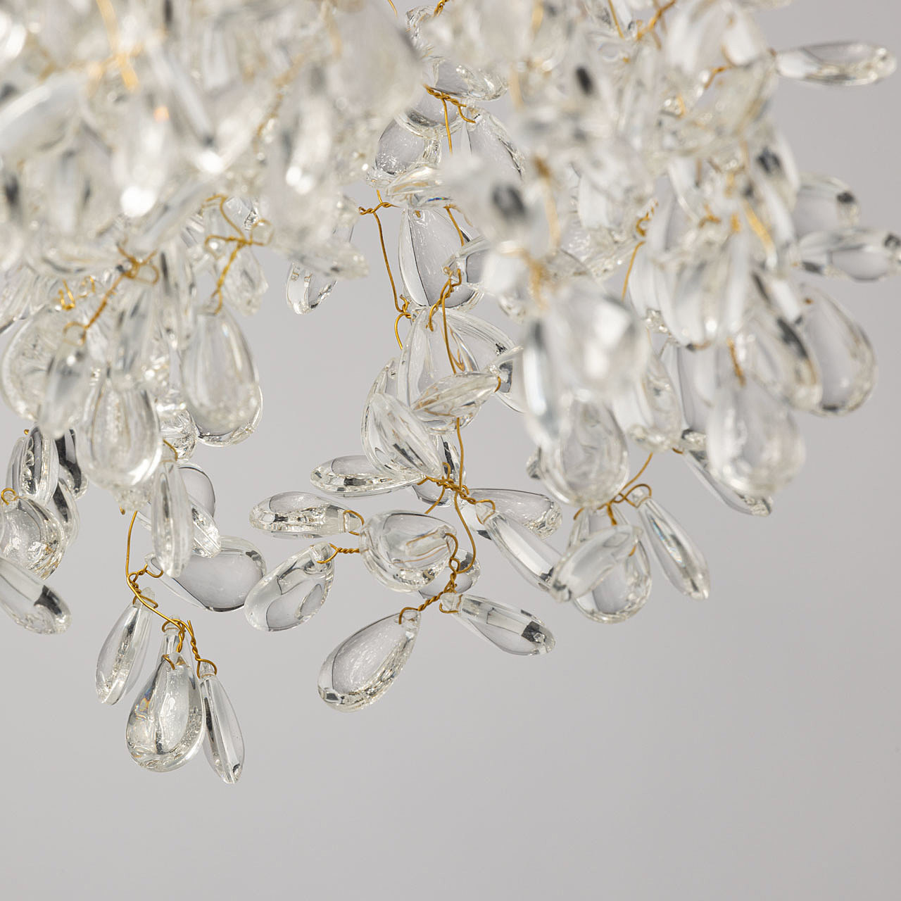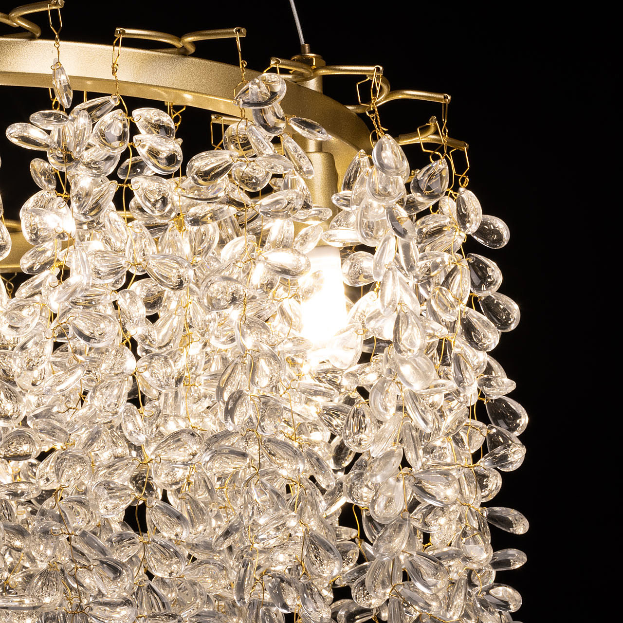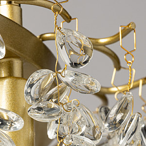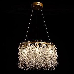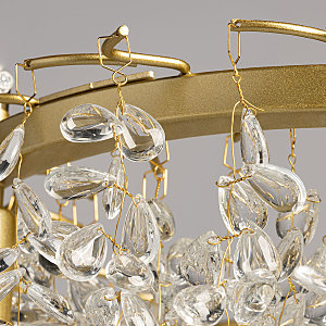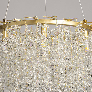 Актуальный цвет латуни придает люстре шарм и эстетику. Современный дизайн с природными мотивами. Подвески из декоративного стекла формы капли создают красивую игру света. Заменяемые источники света удобны в эксплуатации. Возможность регулировки высоты светильника позволяет создать комфортные условия освещения. Металлическое основание подвесной люстры окрашено в цвет латуни. Люстра декорирована подвесками из прозрачного декоративного стекла.