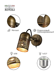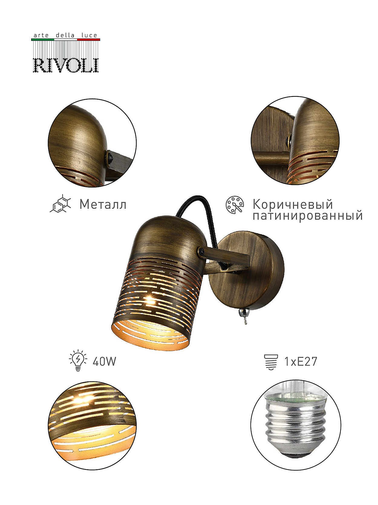Допускается отличие страны-изготовителя, указанной в характеристиках. Линии производства могут находиться в нескольких государствах. Это не влияет на качество изготовления товара: все заводы данного бренда работают по общим стандартам, а готовые изделия проходят соответствующий контроль.Италия Коллекция Lamia ЦветЦвет арматуры коричневый патинированный Цвет Коричневый Материал арматуры Металл Цвет плафона коричневый патинированный Материал плафона Металл РазмерыВысота (мм) 160 Длина (мм) 230 Ширина (мм) 90 ЭлектрикаКоличество ламп (шт) 1 Цоколь E27 Мощность лампы (Вт) 40 Напряжение (В) 220 Площадь освещения 3 Дополнительная информацияСпособ крепления Планка Степень защиты (IP) IP20 Тип выключателя Выключатель на корпусе Вес (Кг) 0,34 Техническая оссобеность Поворотный -
