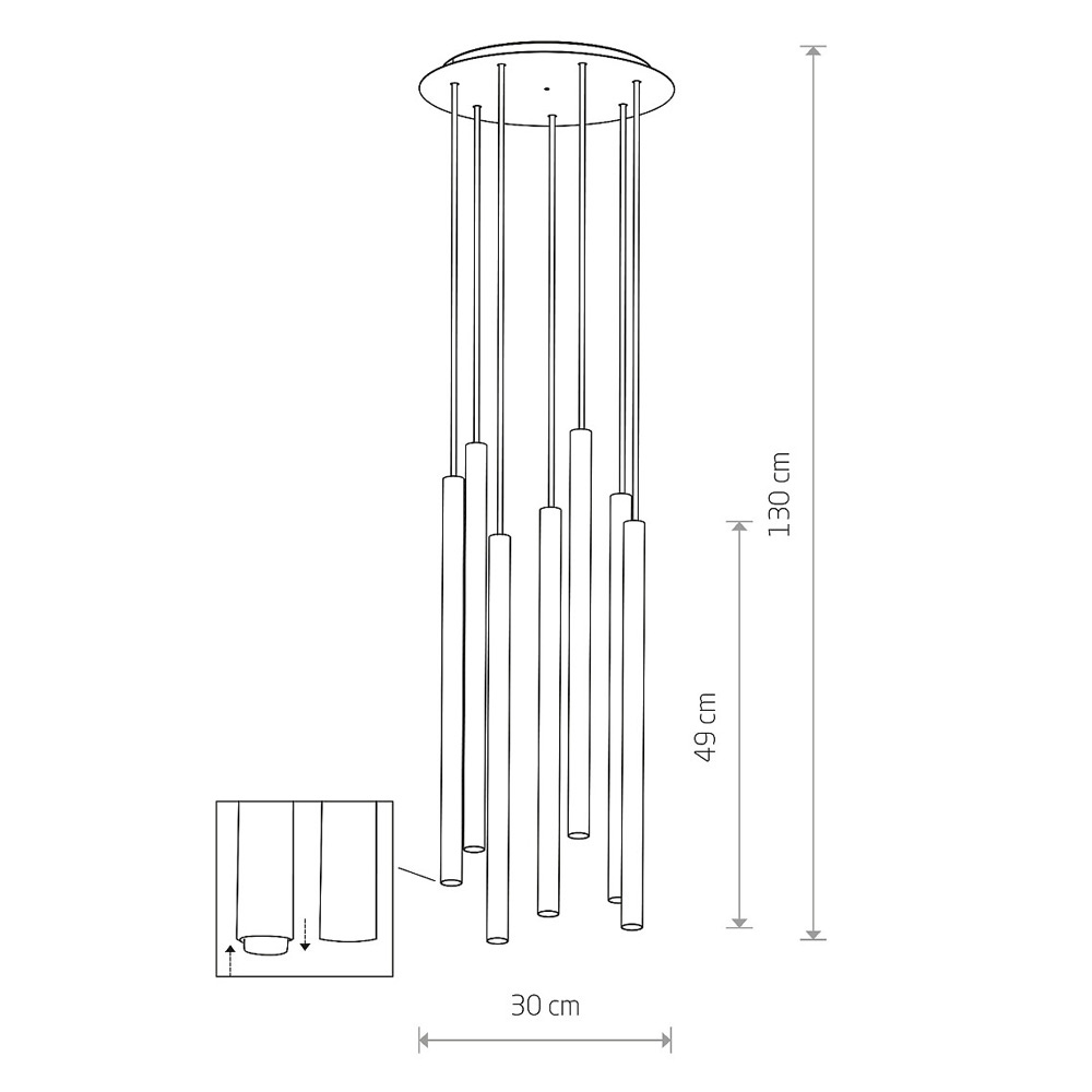 Допускается отличие страны-изготовителя, указанной в характеристиках. Линии производства могут находиться в нескольких государствах. Это не влияет на качество изготовления товара: все заводы данного бренда работают по общим стандартам, а готовые изделия проходят соответствующий контроль.Польша Коллекция Laser 490 ЦветЦвет арматуры Черный Цвет Черный Материал арматуры Сталь Цвет плафона Черный Материал плафона Металл РазмерыВысота (мм) 1300 Диаметр (мм) 300 Ширина (мм) 300 ЭлектрикаКоличество ламп (шт) 7 Цоколь G9 Тип лампы Светодиодная Лампочки в комплекте Нет в комплекте Мощность лампы (Вт) 10 Общая мощность (Вт) 70 Напряжение (В) 220 Дополнительная информацияСтепень защиты (IP) IP20 Место установки на потолок Вес (Кг) 3,22 Тип подвеса На тросах Количество подвесов Много подвесных элементов -