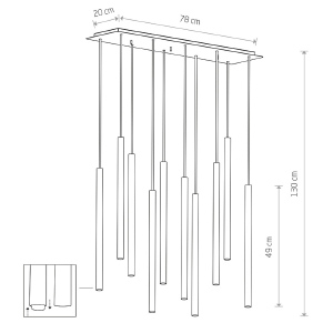 Допускается отличие страны-изготовителя, указанной в характеристиках. Линии производства могут находиться в нескольких государствах. Это не влияет на качество изготовления товара: все заводы данного бренда работают по общим стандартам, а готовые изделия проходят соответствующий контроль.Польша Коллекция Laser 490 ЦветЦвет арматуры Белый Цвет Белый Материал арматуры Сталь Цвет плафона Белый Материал плафона Металл РазмерыВысота (мм) 1300 Ширина (мм) 780 Глубина (мм) 200 ЭлектрикаКоличество ламп (шт) 10 Цоколь G9 Тип лампы Светодиодная Лампочки в комплекте Нет в комплекте Мощность лампы (Вт) 10 Общая мощность (Вт) 100 Напряжение (В) 220 Дополнительная информацияСтепень защиты (IP) IP20 Место установки на потолок Вес (Кг) 5,48 Тип подвеса На тросах Количество подвесов Много подвесных элементов -