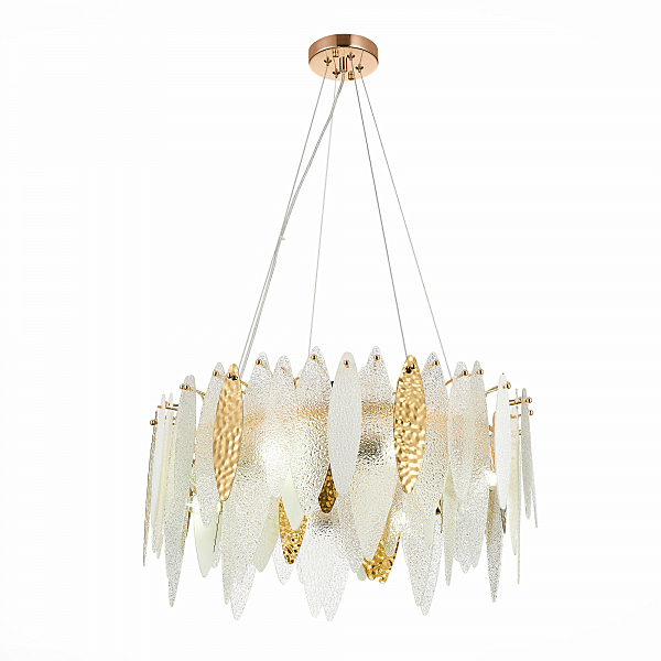 Допускается отличие страны-изготовителя, указанной в характеристиках. Линии производства могут находиться в нескольких государствах. Это не влияет на качество изготовления товара: все заводы данного бренда работают по общим стандартам, а готовые изделия проходят соответствующий контроль.Италия Коллекция Lastra ЦветЦвет арматуры Золото Цвет Золото Материал арматуры Металл Цвет плафона Белый, прозрачный Материал плафона Стекло РазмерыВысота (мм) 1200 Диаметр (мм) 600 Высота минимальная (мм) 300 Ширина (мм) 60 ЭлектрикаКоличество ламп (шт) 8 Цоколь E14 Тип лампы Накаливания Мощность лампы (Вт) 60 Общая мощность (Вт) 480 Площадь освещения 24 Дополнительная информацияСпособ крепления Планка Тип подвеса На тросах -