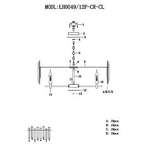 Подвесная люстра Laurina LH0049/12P-CR-CL