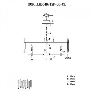 Подвесная люстра Laurina LH0049/12P-GD-CL
