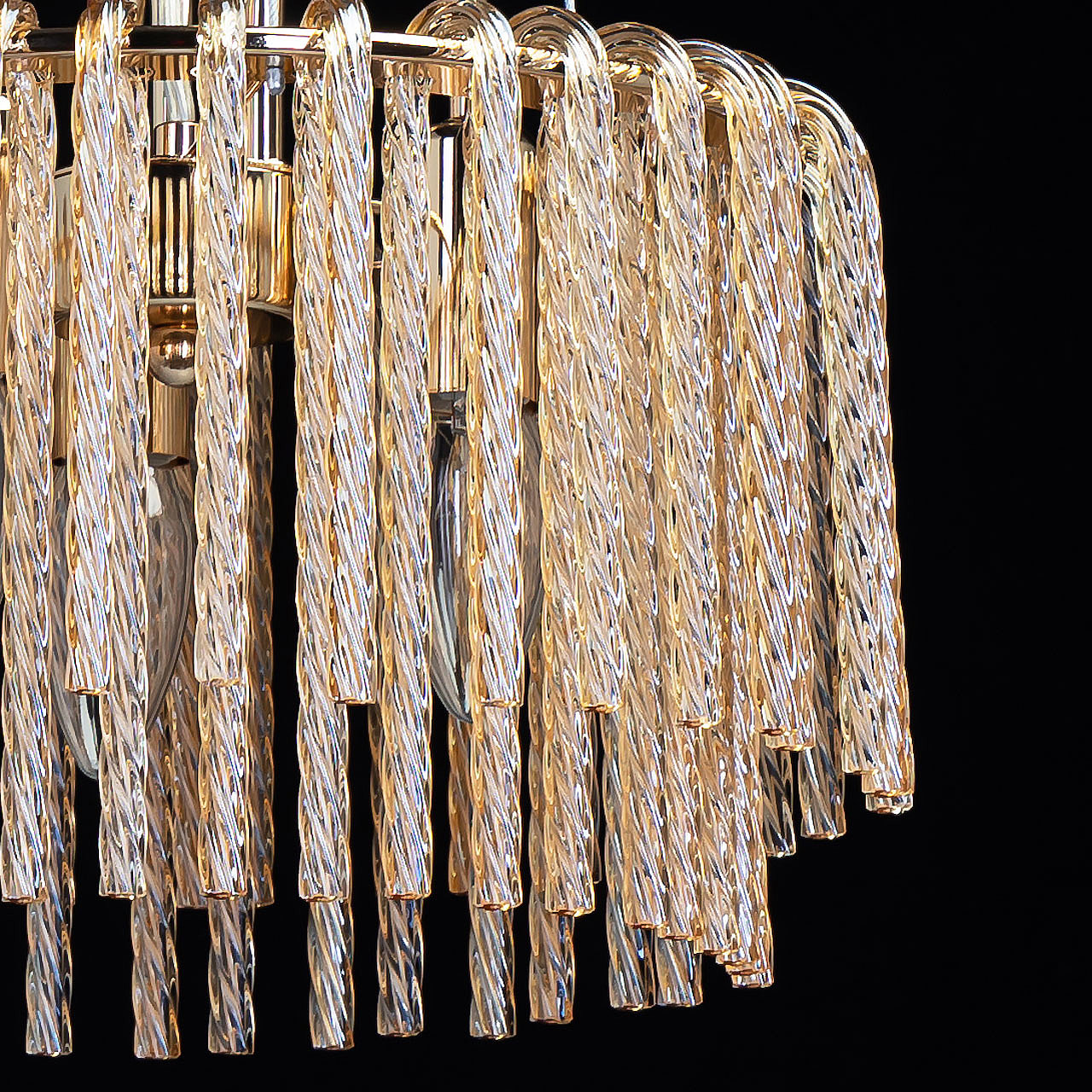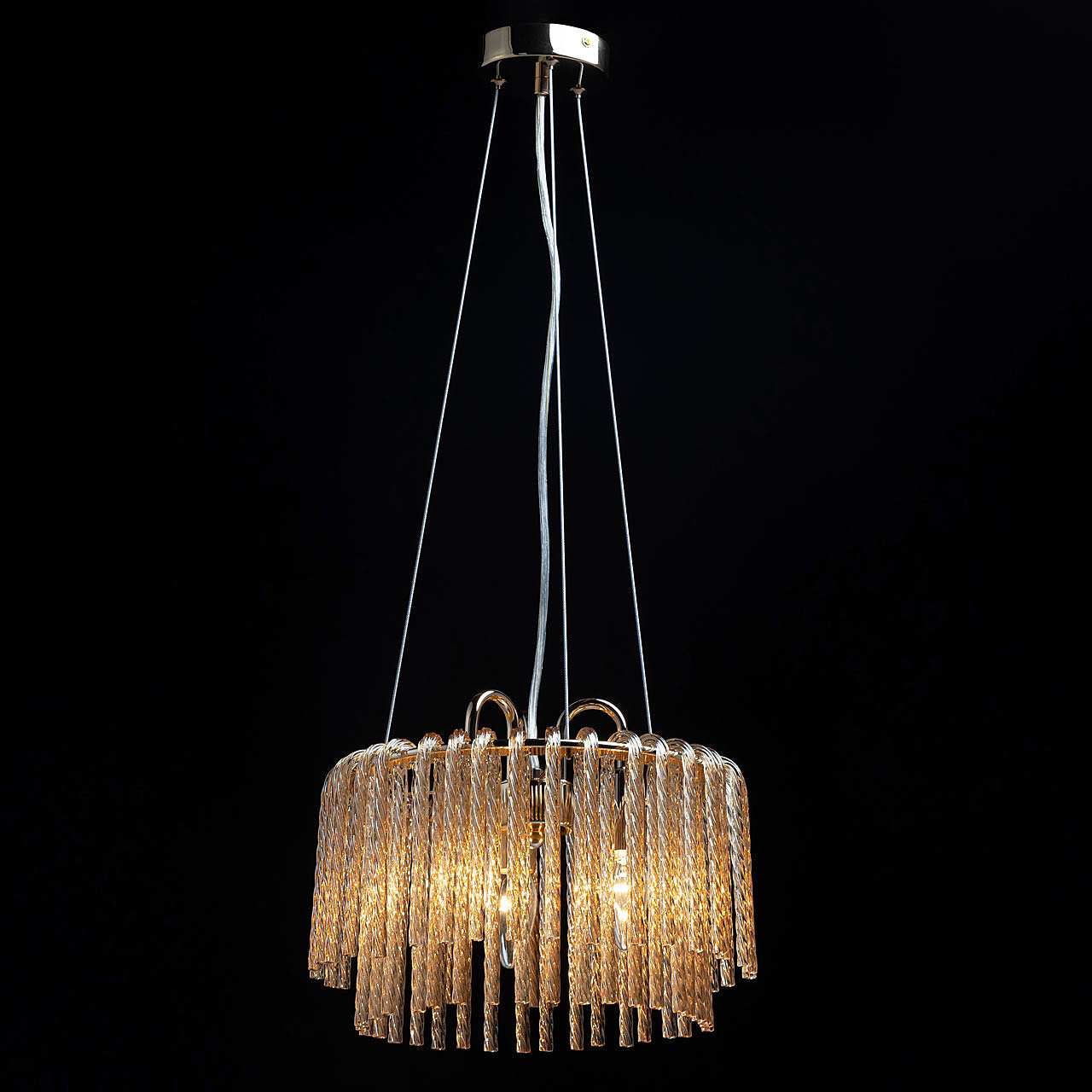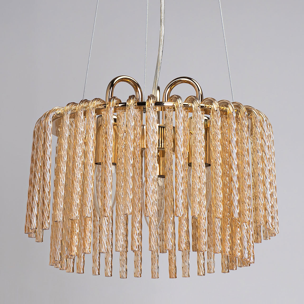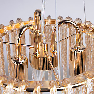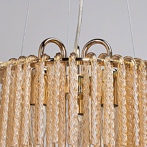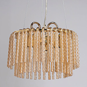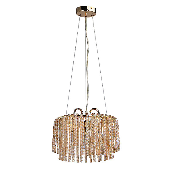 Актуальный цвет основания благородного золота.Эффектный декор из стекла придает потолочной люстре воздушности.Стекло декора цвета шампань создает красивую игру света.Заменяемые источники света удобны в эксплуатации.