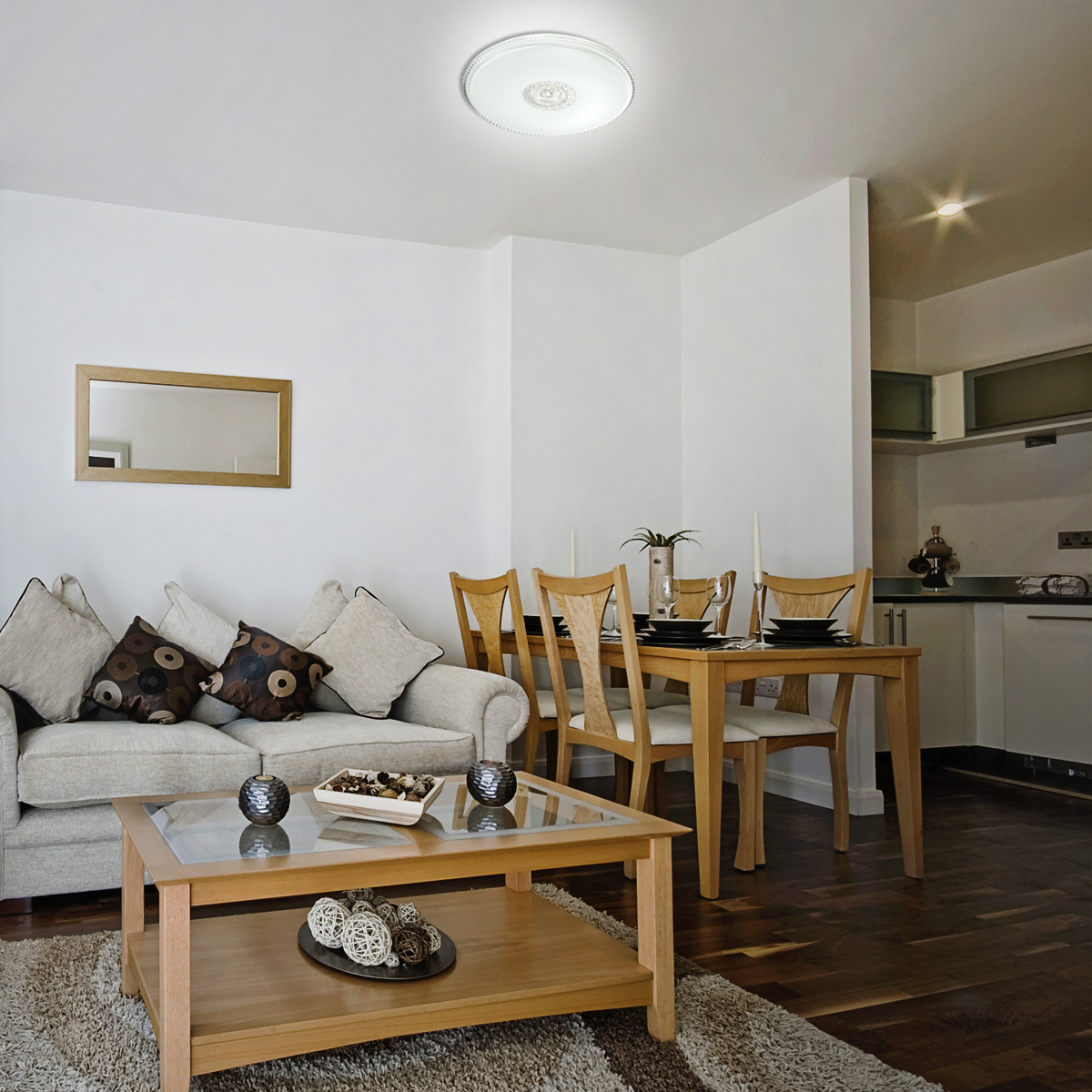 Допускается отличие страны-изготовителя, указанной в характеристиках. Линии производства могут находиться в нескольких государствах. Это не влияет на качество изготовления товара: все заводы данного бренда работают по общим стандартам, а готовые изделия проходят соответствующий контроль.Россия Коллекция Lavora ЦветЦвет арматуры Хром Цвет Белый Материал арматуры Металл Цвет плафона Белый Материал плафона Пластик РазмерыВысота (мм) 52 Диаметр (мм) 380 Ширина (мм) 380 ЭлектрикаКоличество ламп (шт) 1 Цоколь LED Мощность лампы (Вт) 48 Напряжение (В) 220 Мощность эквивалентная лампе накаливания 350 Световой поток 3400 Цветовая температура нейтральный (4000k) Дополнительная информацияСтепень защиты (IP) IP43 Вес (Кг) 0.915 -