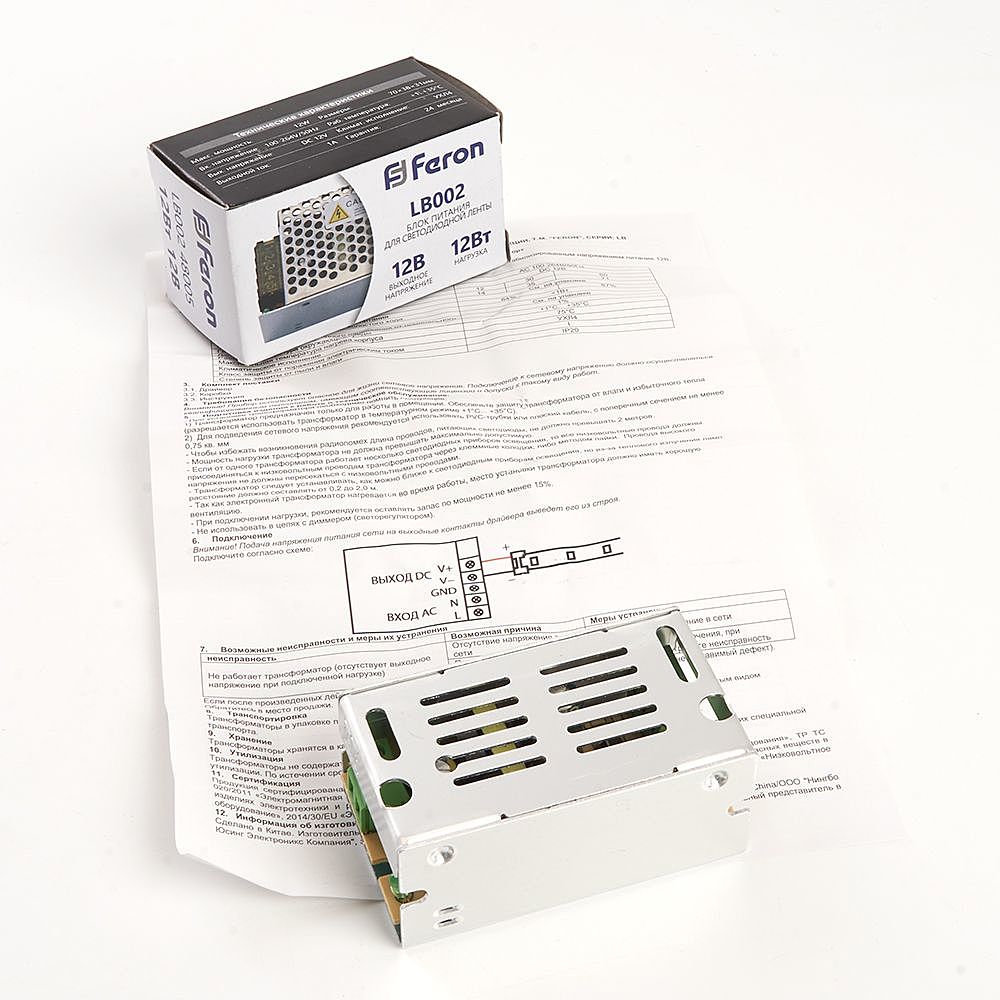 Трансформатор Электронный Для Светодиодной Ленты 12W 12V (Драйвер), Lb002