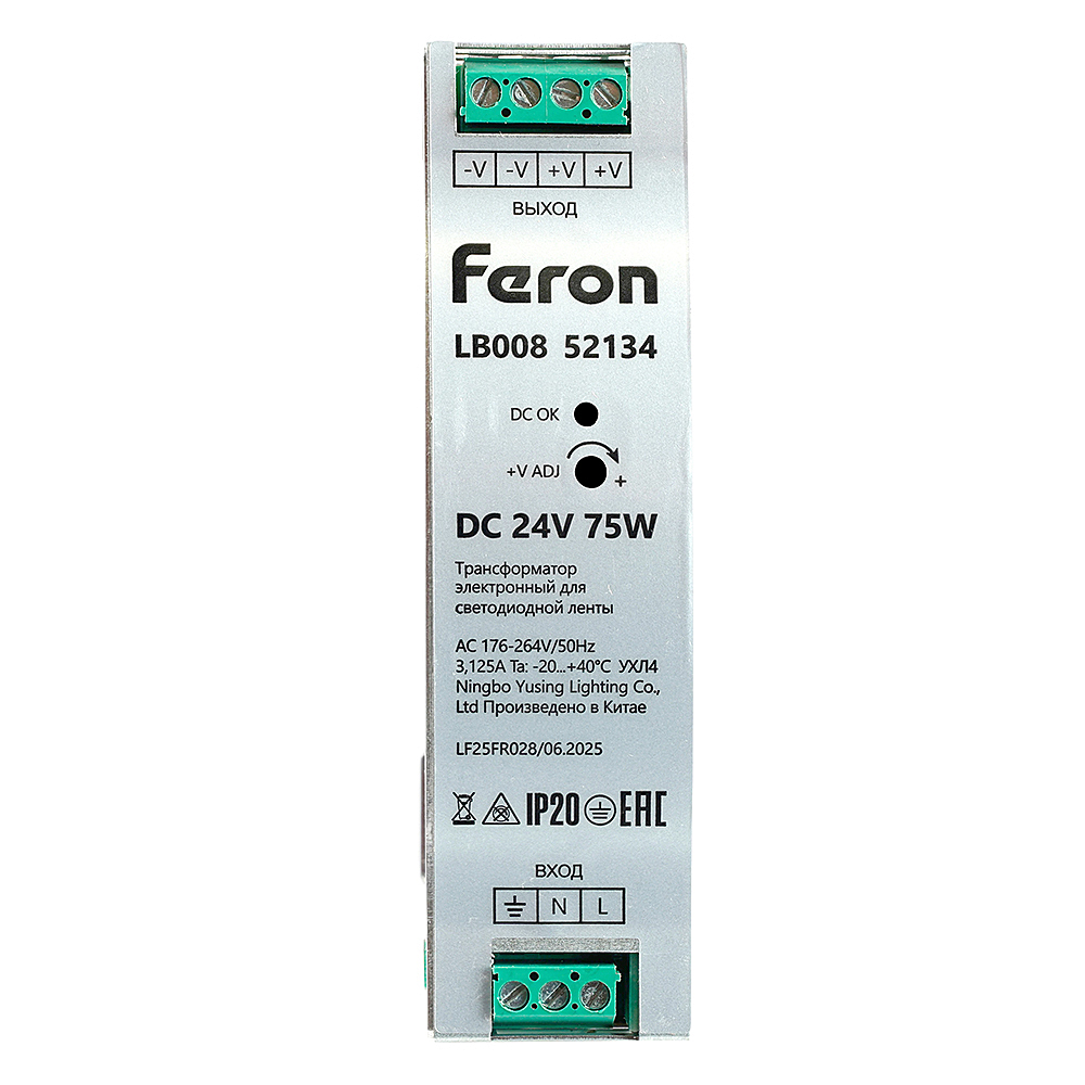 LB008 Трансформатор электронный для светодиодной ленты на DIN-рейку 75W 24V 32*125.2*102мм IP20