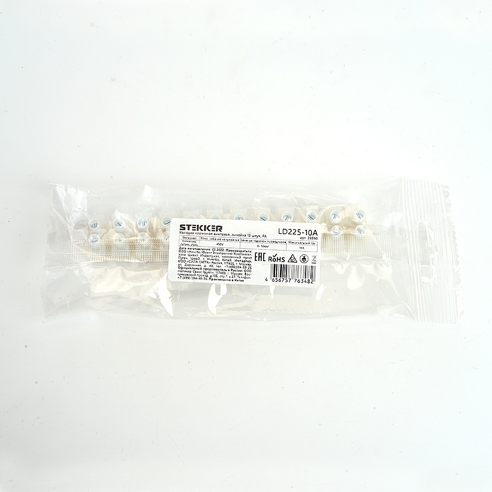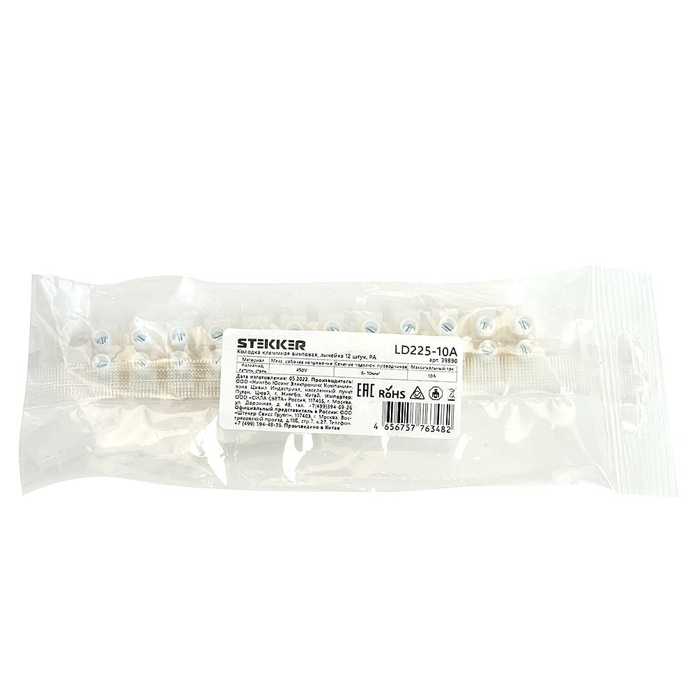 Клемма Винтовая Колодка Stekker Ld225-10A, 12-Проводная 6- 10Мм2, 450В, 10А, Без Пасты, Материал Изделия Полиамид, Латунь, Сталь. Тип Провода Одножильный/Многожильный, Материал Провода Латунь/Медь, Температура Окружающей Среды -25...+125градусовC