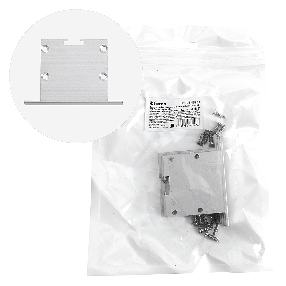 Заглушка Для Профиля Feron Ld356 "Без Отверстия", Цвет Серебро, В Комплекте 4 Шт, 50*8*35Мм