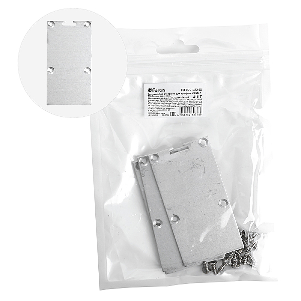 Заглушка Для Профиля Feron Ld365 "Без Отверстия", Цвет Серебро, В Комплекте 4 Шт, 66*2*35Мм