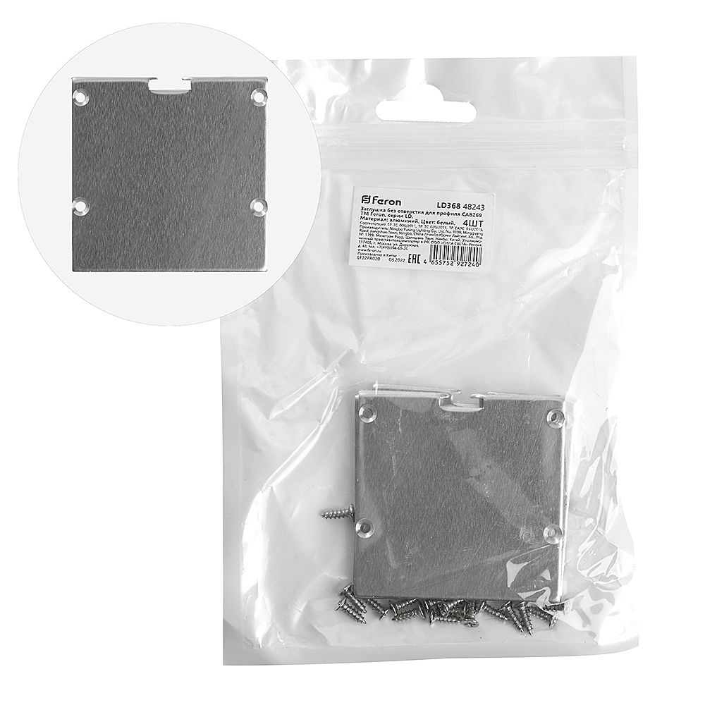 Заглушка Для Профиля Feron Ld368 "Без Отверстия", Цвет Серебро, В Комплекте 4 Шт, 50*2*50Мм