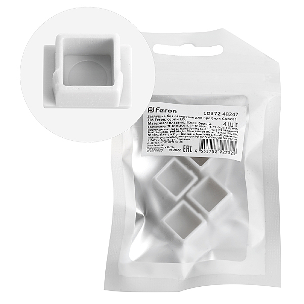 Заглушка Для Профиля Feron Ld372 "Без Отверстия", Цвет Белый, В Комплекте 4 Шт, 15*8*11Мм