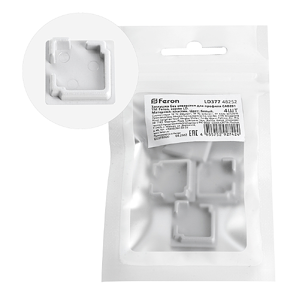 Заглушка Для Профиля Feron Ld377 "Без Отверстия", Цвет Белый, В Комплекте 4 Шт, 16*4*16Мм