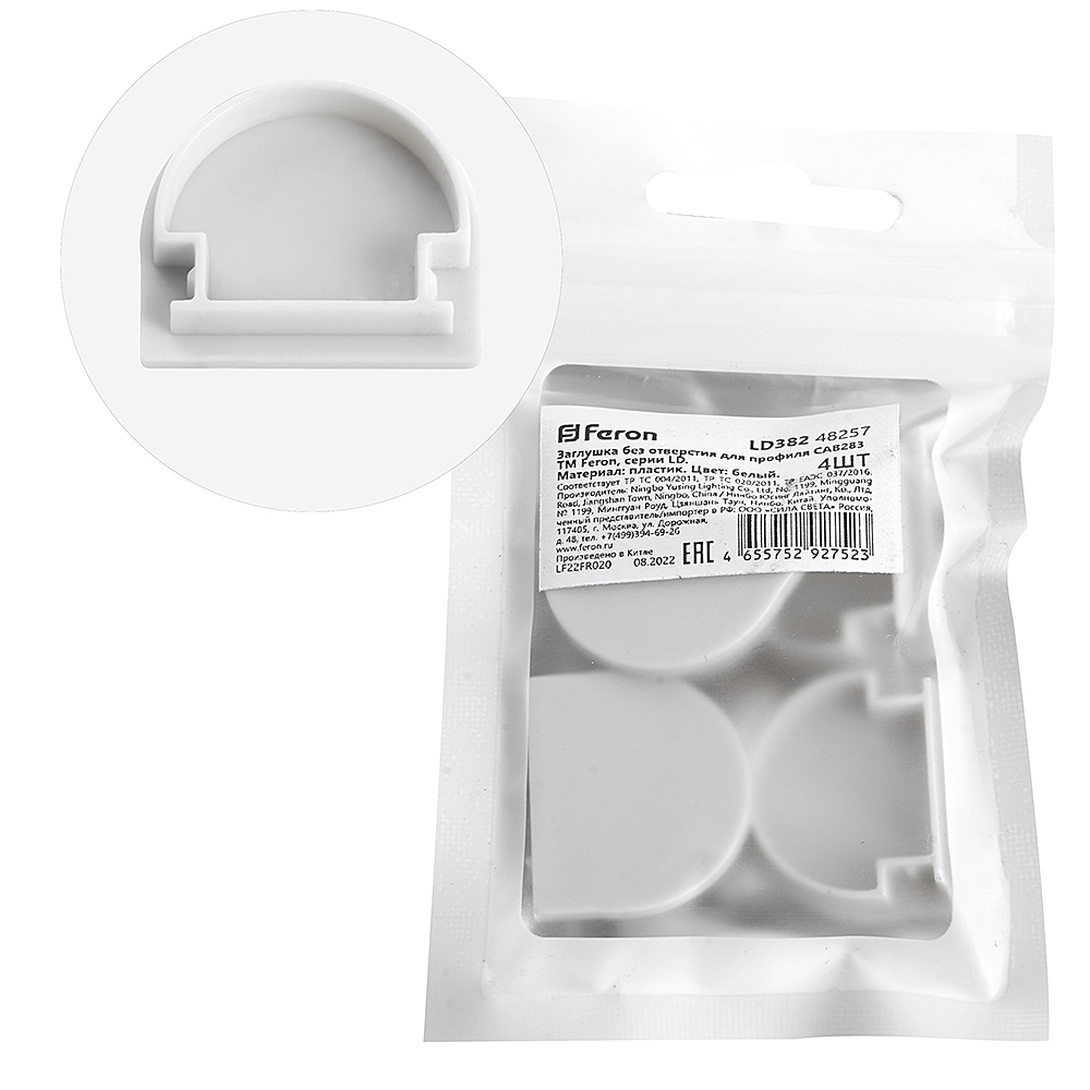 Заглушка Для Профиля Feron Ld382 "Без Отверстия", Цвет Белый, В Комплекте 4 Шт, 24*6*21Мм