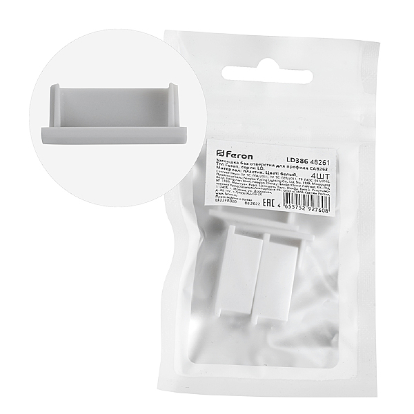 Заглушка Для Профиля Feron Ld386 "Без Отверстия", Цвет Белый, В Комплекте 4 Шт, 23*6*9Мм