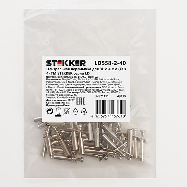 Центральная перемычка для ЗНИ 4 мм (JXB 4) 2PIN LD558-2-40, STEKKER (DIY упаковка 20 шт)