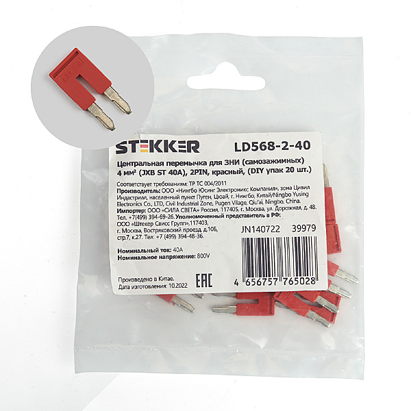 LD568-2-40 Центральная перемычка для ЗНИ самозажимных 4 мм? (JXB ST 4) 2PIN (DIY упак 20 шт)