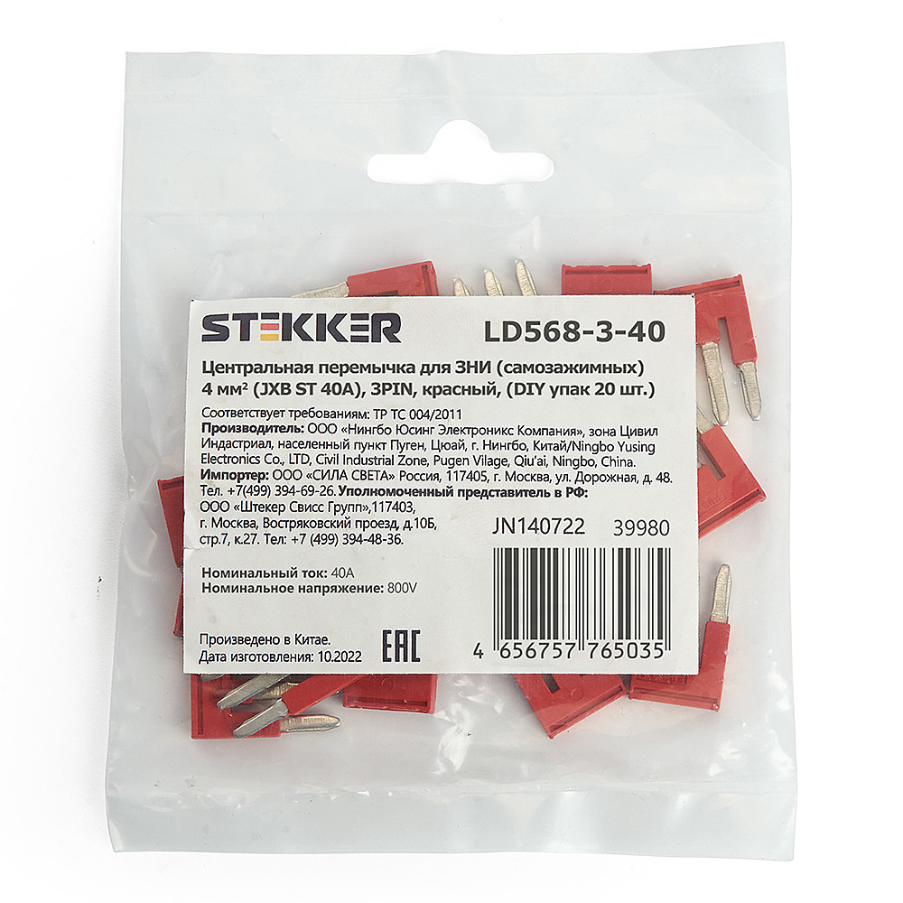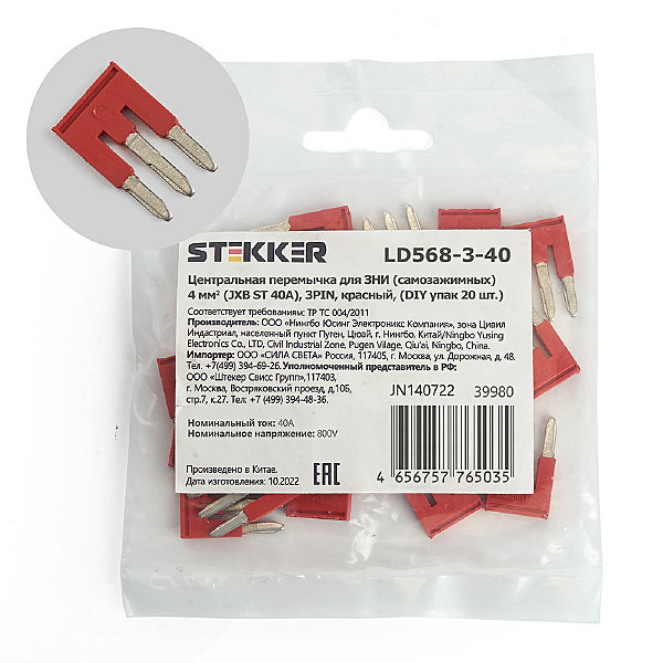 LD568-3-40 Центральная перемычка для ЗНИ самозажимных 4 мм? (JXB ST 4) 3PIN (DIY упак 20 шт)
