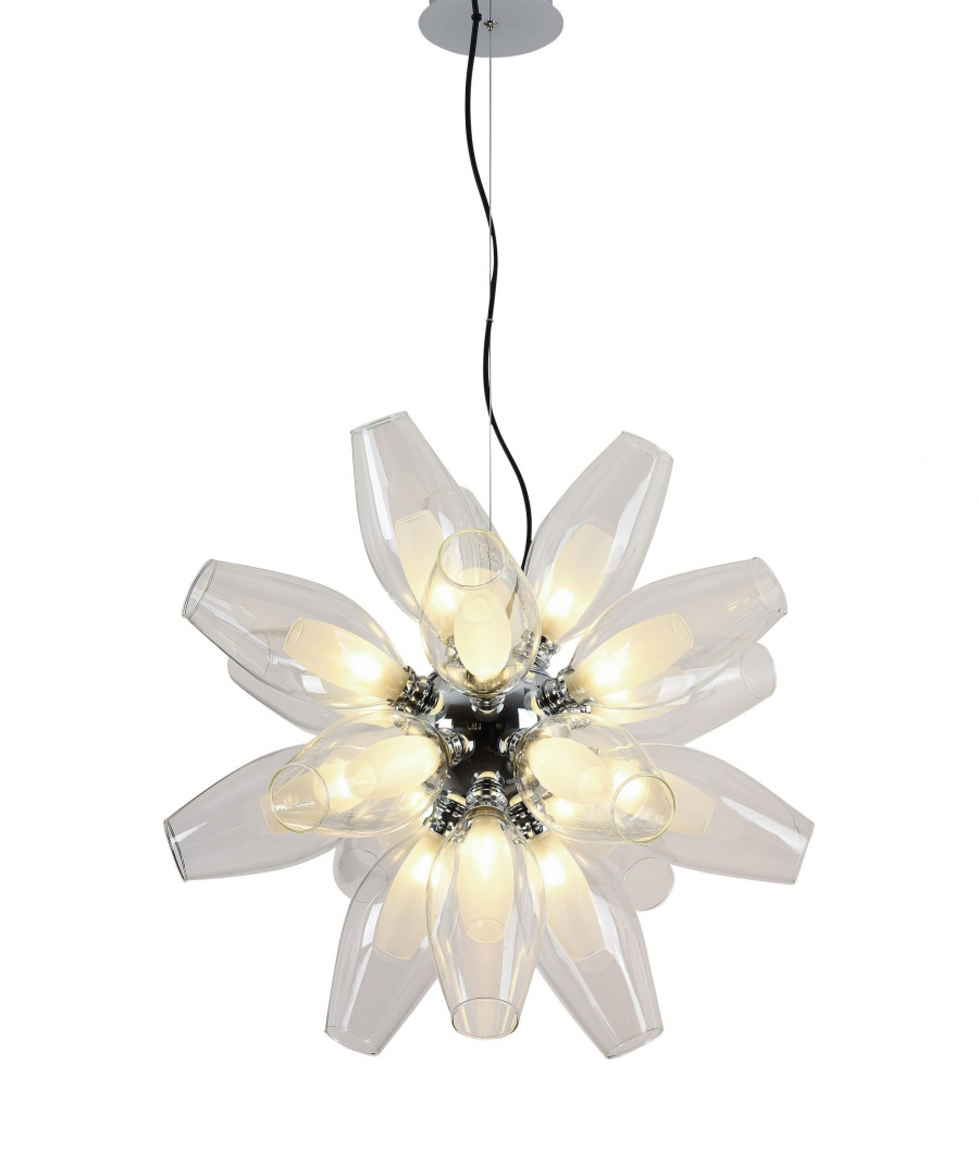 Допускается отличие страны-изготовителя, указанной в характеристиках. Линии производства могут находиться в нескольких государствах. Это не влияет на качество изготовления товара: все заводы данного бренда работают по общим стандартам, а готовые изделия проходят соответствующий контроль.Польша Коллекция Feretta ЦветЦвет арматуры Хром, Прозрачный Цвет Хром Материал арматуры Стекло, Металл Цвет плафона Белый, прозрачный Материал плафона Стекло РазмерыВысота (мм) 600 Диаметр (мм) 600 Диаметр абажура-плафона 120 ЭлектрикаКоличество ламп (шт) 18 Цоколь G9 Лампочки в комплекте Нет в комплекте Мощность лампы (Вт) 10 Напряжение (В) 220 Дополнительная информацияСтепень защиты (IP) IP20 Вес (Кг) 12 Тип подвеса На тросах -