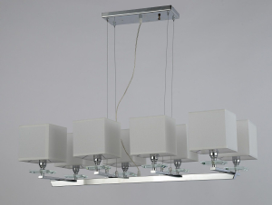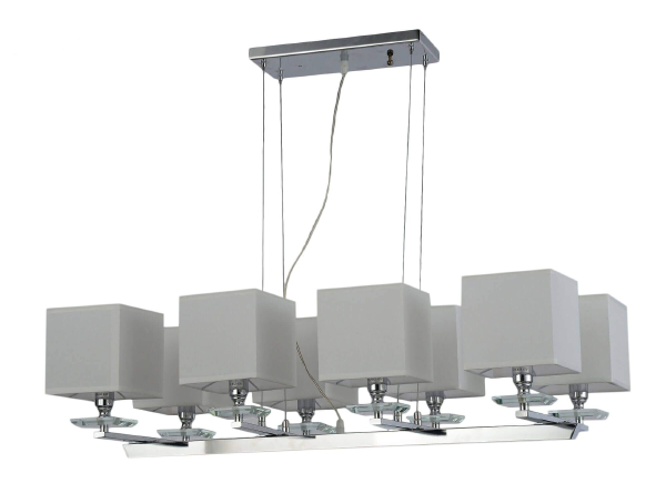 Допускается отличие страны-изготовителя, указанной в характеристиках. Линии производства могут находиться в нескольких государствах. Это не влияет на качество изготовления товара: все заводы данного бренда работают по общим стандартам, а готовые изделия проходят соответствующий контроль.Польша ЦветЦвет арматуры Хром, Белый Цвет Белый Материал арматуры Стекло, Ткань, Хрусталь, Металл Цвет плафона Белый Материал плафона Ткань РазмерыВысота (мм) 500 Высота минимальная (мм) 550 Ширина (мм) 920 ЭлектрикаКоличество ламп (шт) 8, 6-9 Цоколь E14 Тип лампы все типы лампочек Лампочки в комплекте нет Мощность лампы (Вт) 40 Напряжение (В) 220 Дополнительная информацияСтепень защиты (IP) IP20 Тип подвеса На цепи -