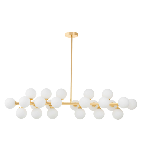 Допускается отличие страны-изготовителя, указанной в характеристиках. Линии производства могут находиться в нескольких государствах. Это не влияет на качество изготовления товара: все заводы данного бренда работают по общим стандартам, а готовые изделия проходят соответствующий контроль.Польша Коллекция Marsiada ЦветЦвет арматуры золотой Цвет Золото Материал арматуры Металл Цвет плафона Белый Материал плафона Стекло РазмерыВысота (мм) 250 Диаметр абажура-плафона 100 ЭлектрикаКоличество ламп (шт) 24 Цоколь G9 Тип лампы все типы лампочек Лампочки в комплекте нет Мощность лампы (Вт) 28 Общая мощность (Вт) 672 Напряжение (В) 220 Дополнительная информацияСтепень защиты (IP) IP20 Вес (Кг) 11 -