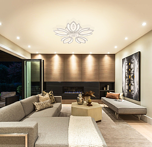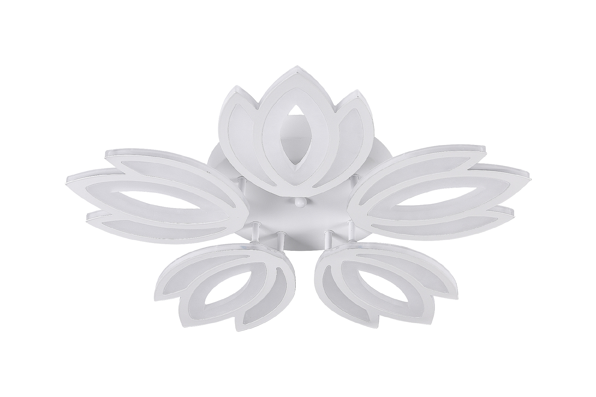 Светодиодный светильник с дистанционным управлением через пульт ДУ, смартфон, планшет. Лицевую часть составляют равноудалённые друг от друга рожки с симметричным дизайнерским узором. По их периметру расположена подсветка, а акрил обеспечивает отличное рассеивание света. Дизайн люстры выполнен в современном стиле в белом цвете и отлично подойдёт в любой интерьер. Люстра имеет тёплый, естественный и холодный свет с регулировкой температуры свечения. Обладает плавной настройкой яркости в диапазоне от 10% до 100%. Имеется режим ночника и таймер отключения. Кроме того, от стандартного выключателя люстра имеет 4 режима свечения. Данные функции делают светильник оптимальным в процессе использования. Общая мощность 140W со световым потоком 9600 lm позволяет осветить до 25 кв.м. Он прост в сборке, установке и экономичен в обслуживании. Светодиоды легко заменимы в случае перегорания. Люстра подойдёт для всех видов потолков. Цветовая температура настраивается от 2700 до 7000 K. Степень защиты 20 IP.