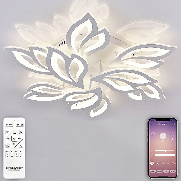 Люстра потолочная светодиодная с пультом ДУ от бренда Natali Kovaltseva представляет собой современное и функциональное решение для освещения вашего дома. Светильник выполнен в стиле хай-тек, который хорошо сочетается с современным интерьером, а также может стать отличным дополнением к классическому или модернистскому дизайну.Люстра оснащена светодиодными лампами, что обеспечивает высокую энергоэффективность и долговечность. Общая мощность 200W со световым потоком 13000 lm позволяет осветить до 32 кв.м. Благодаря пульту дистанционного управления, вы можете легко регулировать яркость света, а также выбирать желаемый цвет освещения (теплый, холодный, нейтральный), создавая идеальную атмосферу в любой комнате.Данный светильник идеально подходит для различных помещений, таких как кухня, спальня, гостиная, детская или игровая комната, а также для балкона, коридора. Он легко устанавливается на любой тип потолка, включая натяжной, и имеет скрытый тип монтажа, что делает его универсальным решением для любого интерьера. Люстра станет отличным решением как для низкого потолка, так и для высокого.Люстра выполнена из металла и акрила, что обеспечивает ей прочность и долговечность. Производитель предоставляет расширенную гарантию 3 года. Степень пылевлагозащиты IP20 гарантирует, что светильник будет хорошо работать в обычных условиях использования. Срок службы светодиодов составляет 50 000 часов, что является отличным показателем качества. Выбирая эту люстру, вы получаете не только качественное и эффективное освещение, но и возможность создавать уникальную атмосферу в вашем доме.