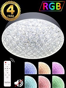 Светодиодный светильник с дистанционным управлением через пульт ДУ, смартфон, планшет. Основание люстры выполнено из металла, а лицевой рассеиватель из высококачественного поликарбоната, что обеспечивает хорошее рассеивание света. Дизайн люстры выполнен в современном стиле в белом цвете и отлично подойдёт в любой интерьер. Люстра имеет тёплый, естественный и холодный свет с регулировкой температуры свечения. Функция RGB позволит создать красочную атмосферу, которая включает в себя 7 разных цветов с возможностью их переливания. Обладает плавной настройкой яркости в диапазоне от 10% до 100%. Имеется режим ночника и таймер отключения. Кроме того, от стандартного выключателя люстра имеет 6 режимов свечения. Данные функции делают светильник оптимальным в процессе использования. Общая мощность 80W со световым потоком 6400 lm позволяет осветить до 20 кв.м. Светодиоды легко заменимы в случае перегорания. Он прост в сборке, установке и экономичен в обслуживании. Цветовая температура настраивается от 2700 до 7000 K. Степень защиты 20 IP.