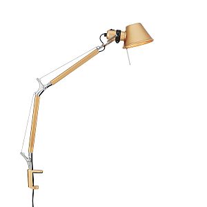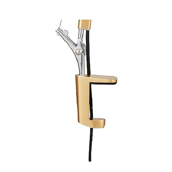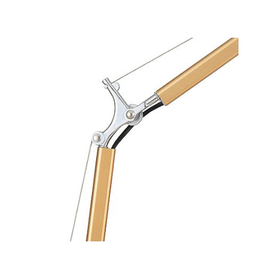 сочетание двух цветов - золотое окрашивание и гальваника хром, две точки изменения наклона на каркасе плюс поворотный плафон, светильник с креплением для установки на столешницу рабочего места