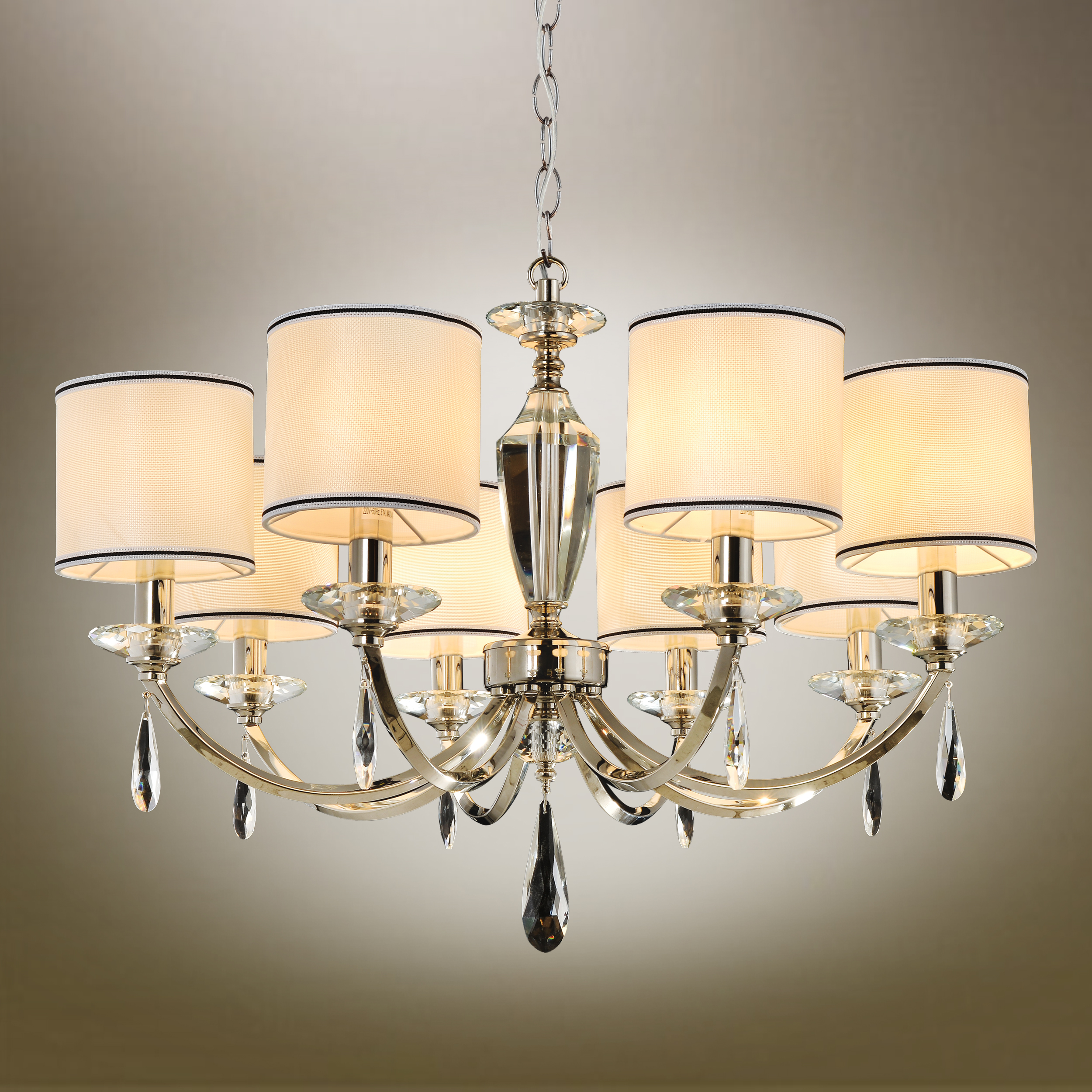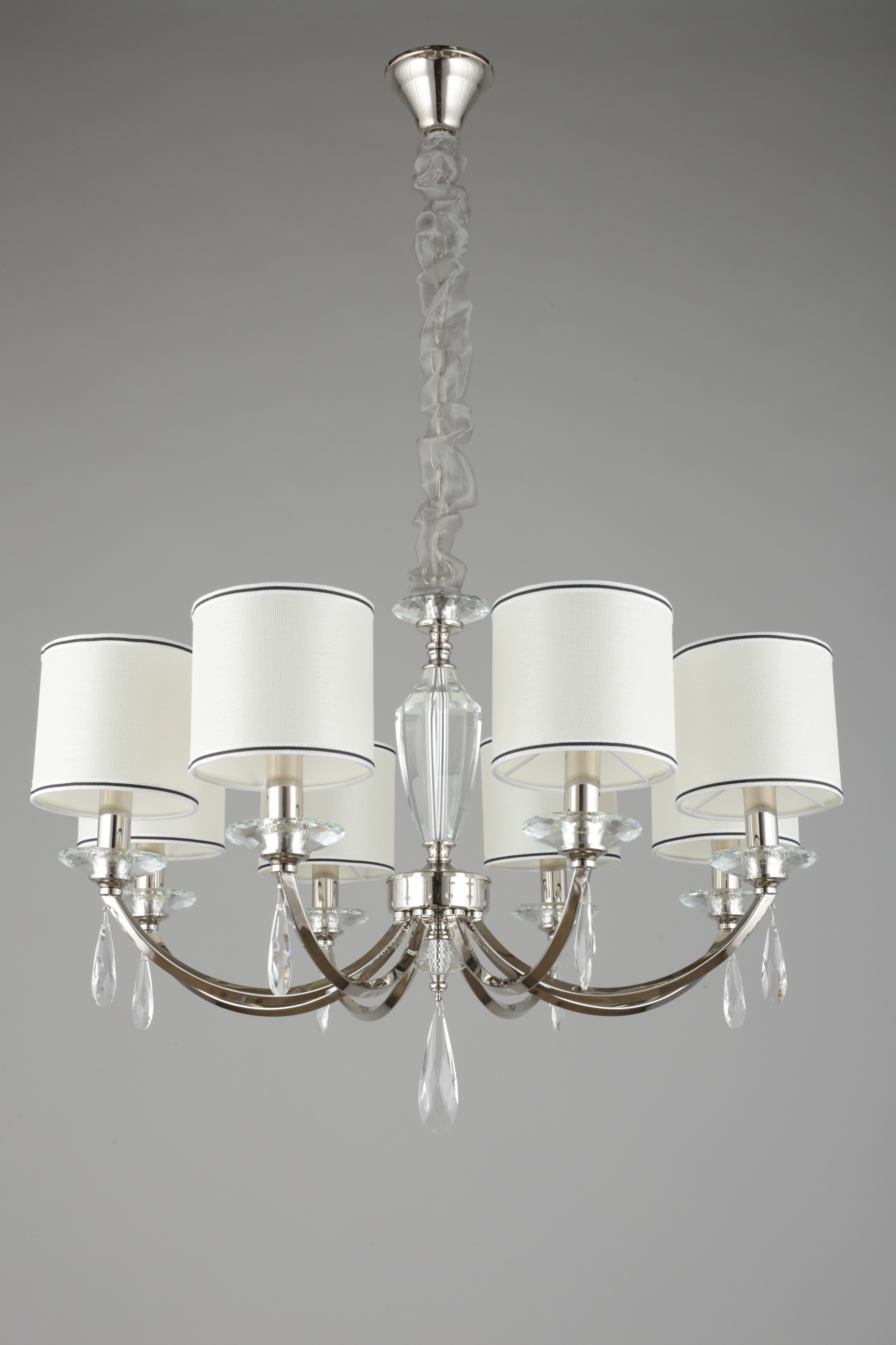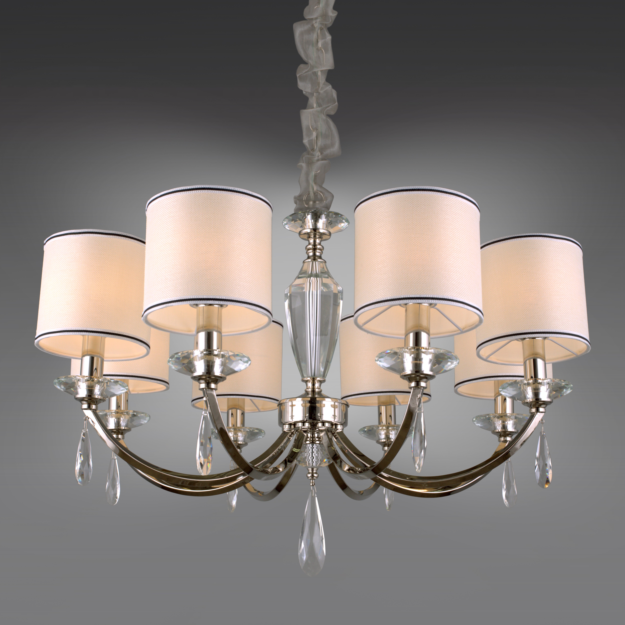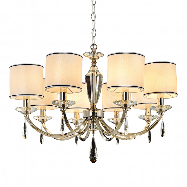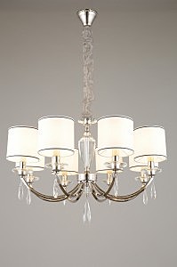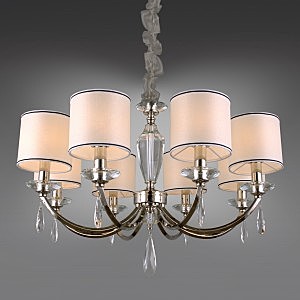 Допускается отличие страны-изготовителя, указанной в характеристиках. Линии производства могут находиться в нескольких государствах. Это не влияет на качество изготовления товара: все заводы данного бренда работают по общим стандартам, а готовые изделия проходят соответствующий контроль.Китай Коллекция Leonzio ЦветЦвет арматуры Хром Цвет Хром Материал арматуры Металл, Стекло Цвет декора прозрачный Цвет плафона Черный, бежевый Материал декора Хрусталь Материал плафона Ткань РазмерыВысота (мм) 1570 Диаметр (мм) 790 Высота минимальная (мм) 570 Ширина (мм) 790 ЭлектрикаКоличество ламп (шт) 8 Цоколь E14 Мощность лампы (Вт) 40 Напряжение (В) 220 Дополнительная информацияСпособ крепления Крюк Тип подвеса На цепи -