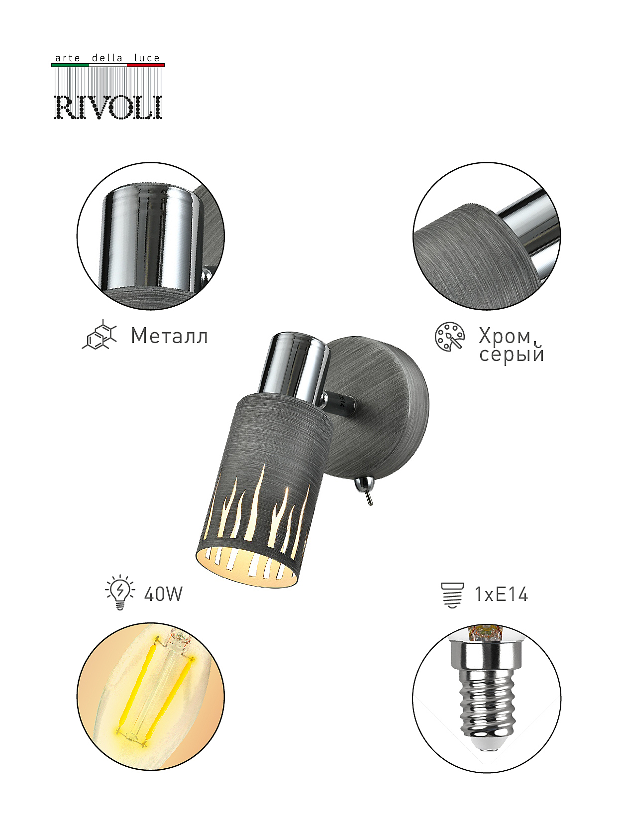 Допускается отличие страны-изготовителя, указанной в характеристиках. Линии производства могут находиться в нескольких государствах. Это не влияет на качество изготовления товара: все заводы данного бренда работают по общим стандартам, а готовые изделия проходят соответствующий контроль.Италия Коллекция Lethe ЦветЦвет арматуры Хром, Серый Цвет Серый Материал арматуры Металл Цвет плафона Серый Материал плафона Металл РазмерыВысота (мм) 150 Длина (мм) 170 Ширина (мм) 90 ЭлектрикаКоличество ламп (шт) 1 Цоколь E14 Мощность лампы (Вт) 40 Площадь освещения 3 Дополнительная информацияСпособ крепления Планка Степень защиты (IP) IP20 Тип выключателя Выключатель на корпусе Вес (Кг) 0,36 Техническая оссобеность Поворотный Тип подвеса На штанге -
