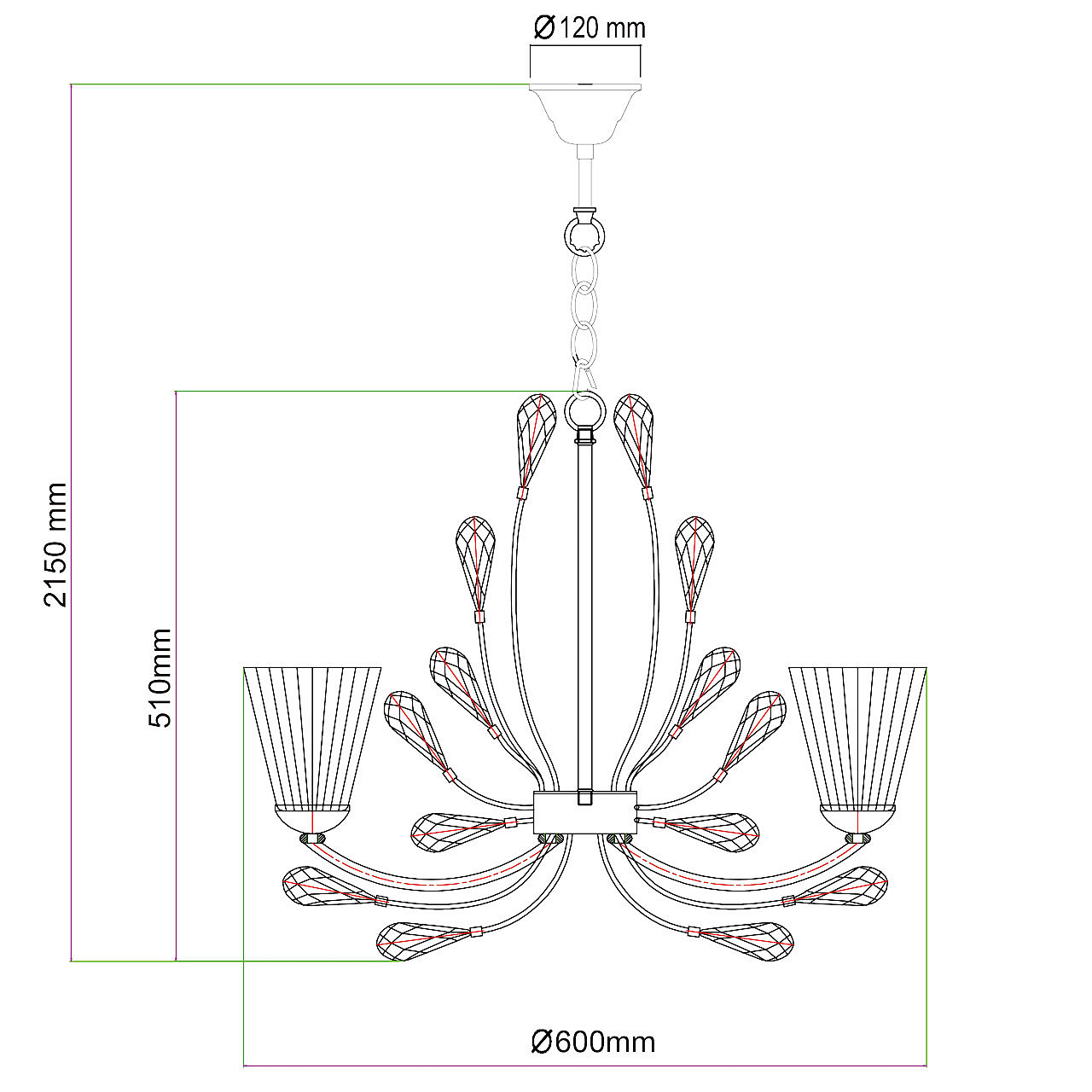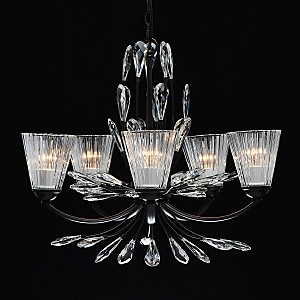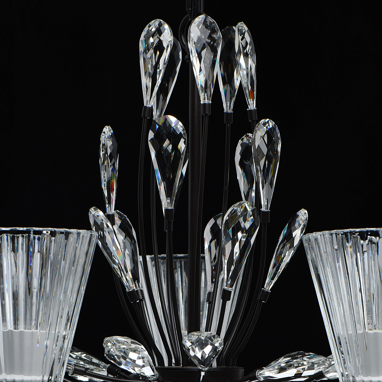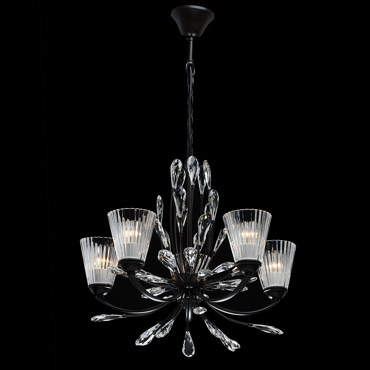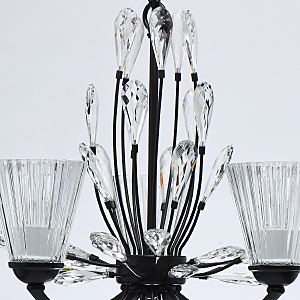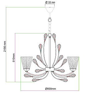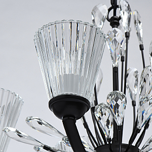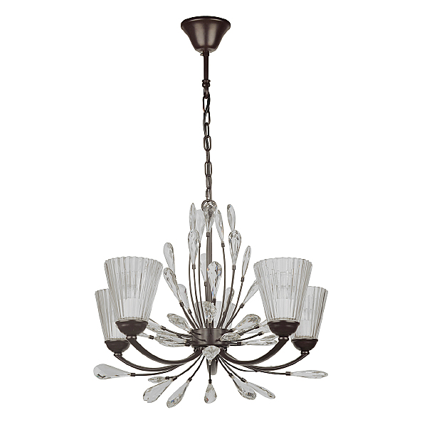 Современный флористический дизайн в тренде.Декор из крупного хрусталя особой формы придает модели легкости. Фактурные плафоны из стекла обеспечивают комфортный свет.Регулируемая высота за счет звеньев цепи.Заменяемые традиционные источники света удобны в эксплуатации.Полная семья из бра, потолочных люстр на 5 и 8 ламп.