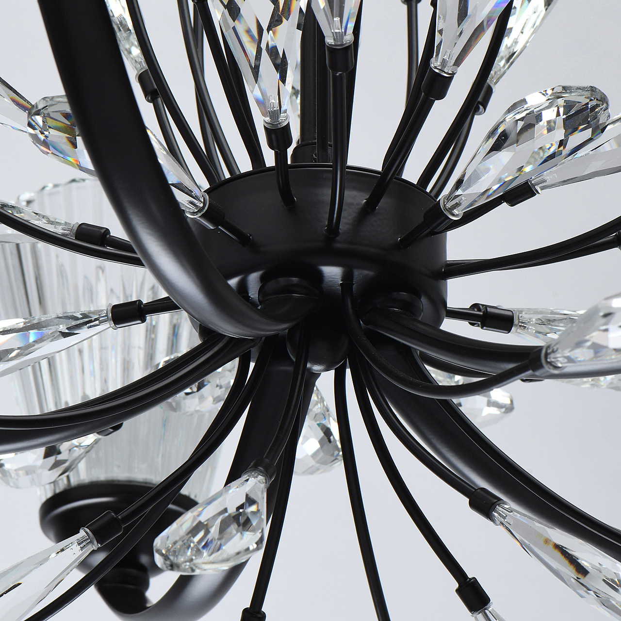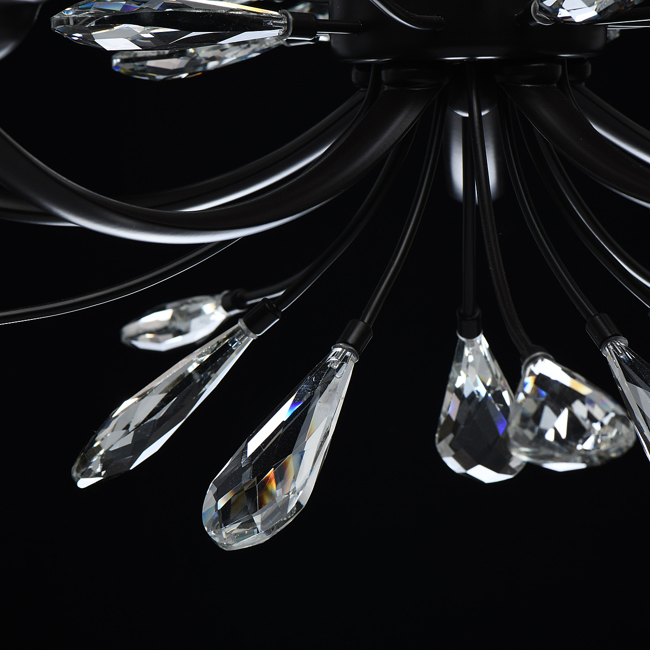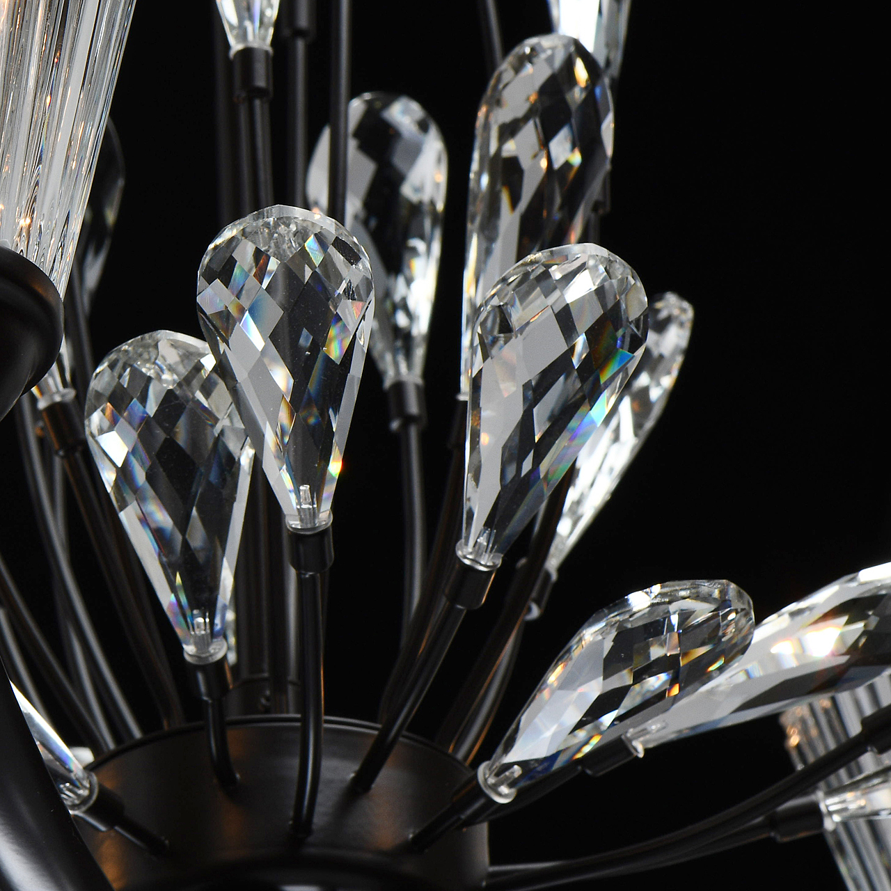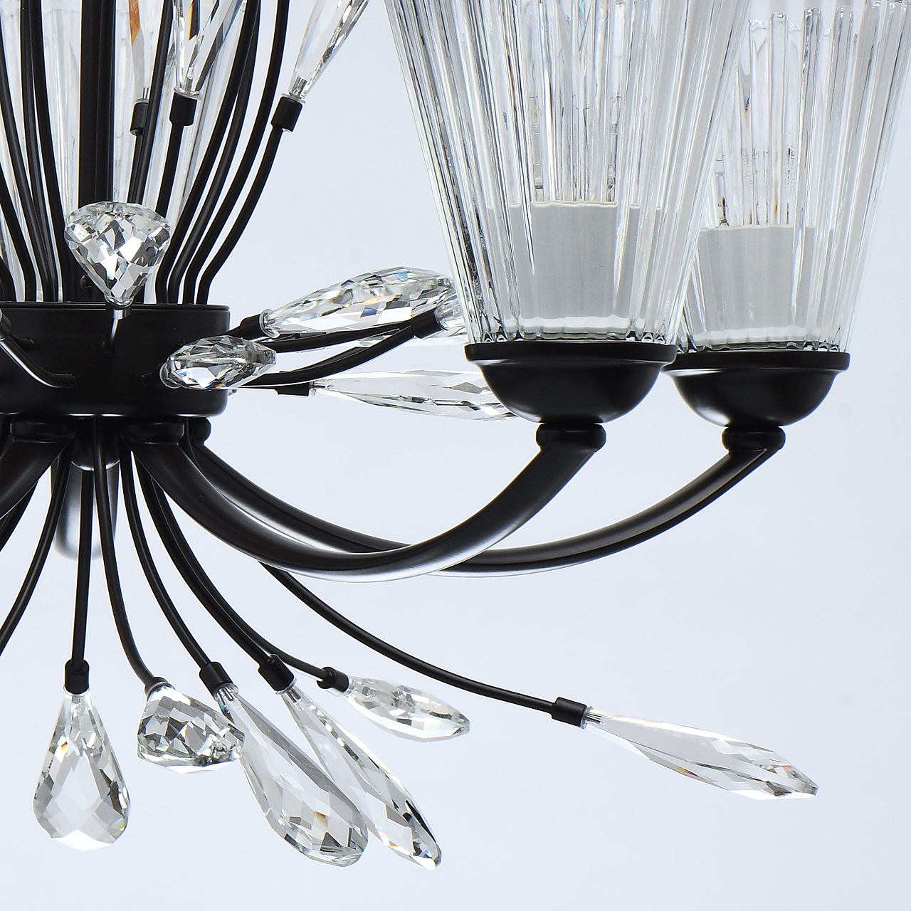 Современный флористический дизайн в тренде.Декор из крупного хрусталя особой формы придает модели легкости. Фактурные плафоны из стекла обеспечивают комфортный свет.Регулируемая высота за счет звеньев цепи.Заменяемые традиционные источники света удобны в эксплуатации.Полная семья из бра, потолочных люстр на 5 и 8 ламп.