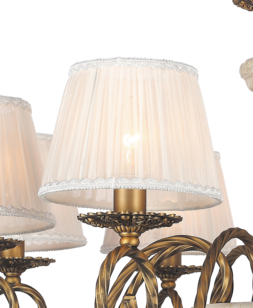 Допускается отличие страны-изготовителя, указанной в характеристиках. Линии производства могут находиться в нескольких государствах. Это не влияет на качество изготовления товара: все заводы данного бренда работают по общим стандартам, а готовые изделия проходят соответствующий контроль.Испания Коллекция Летисия ЦветЦвет арматуры Бронза Цвет Бронза Материал арматуры Металл Цвет плафона Белый Материал плафона Ткань РазмерыВысота (мм) 515 Диаметр (мм) 840 Ширина (мм) 840 ЭлектрикаКоличество ламп (шт) 8 Цоколь E14 Тип лампы Светодиодная, Накаливания, Энергосберегающая (КЛЛ) Лампочки в комплекте Нет в комплекте Мощность лампы (Вт) 60 Напряжение (В) 220 Площадь освещения 24 Дополнительная информацияСтепень защиты (IP) IP20 Вес (Кг) 9,2 Тип подвеса На цепи -