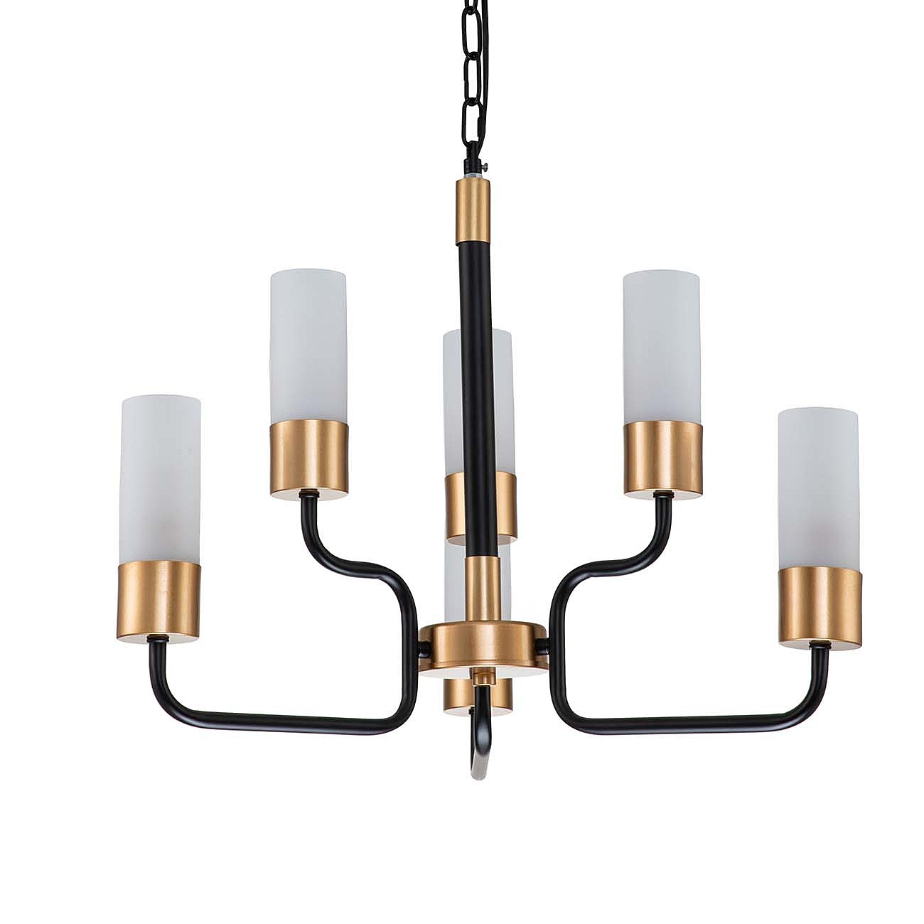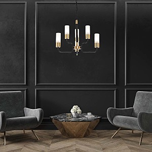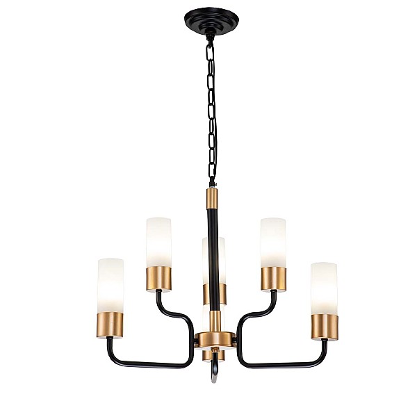 Подвесной светильник 6х40Вт E14, металл/стекло, черный/золото, плафон белый матовый