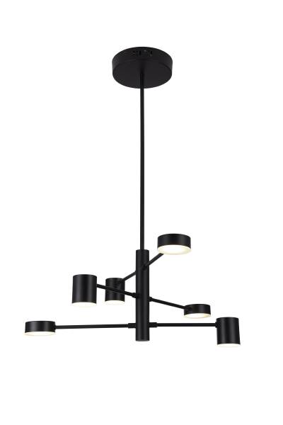 <p>Потолочная люстра на штанге в стильном черном цвете. Цилиндрические плафоны симметрично расположены по периметру для равномерного освещения. Все осветительные элементы оснащены встроенными светодиодными лампами общей мощностью 30 Вт. Черный металлический каркас надежно крепится к потолку с помощью крепежной планки. Лаконичный дизайн светильника позволяет расположить люстру в любом современном интерьере.</p>