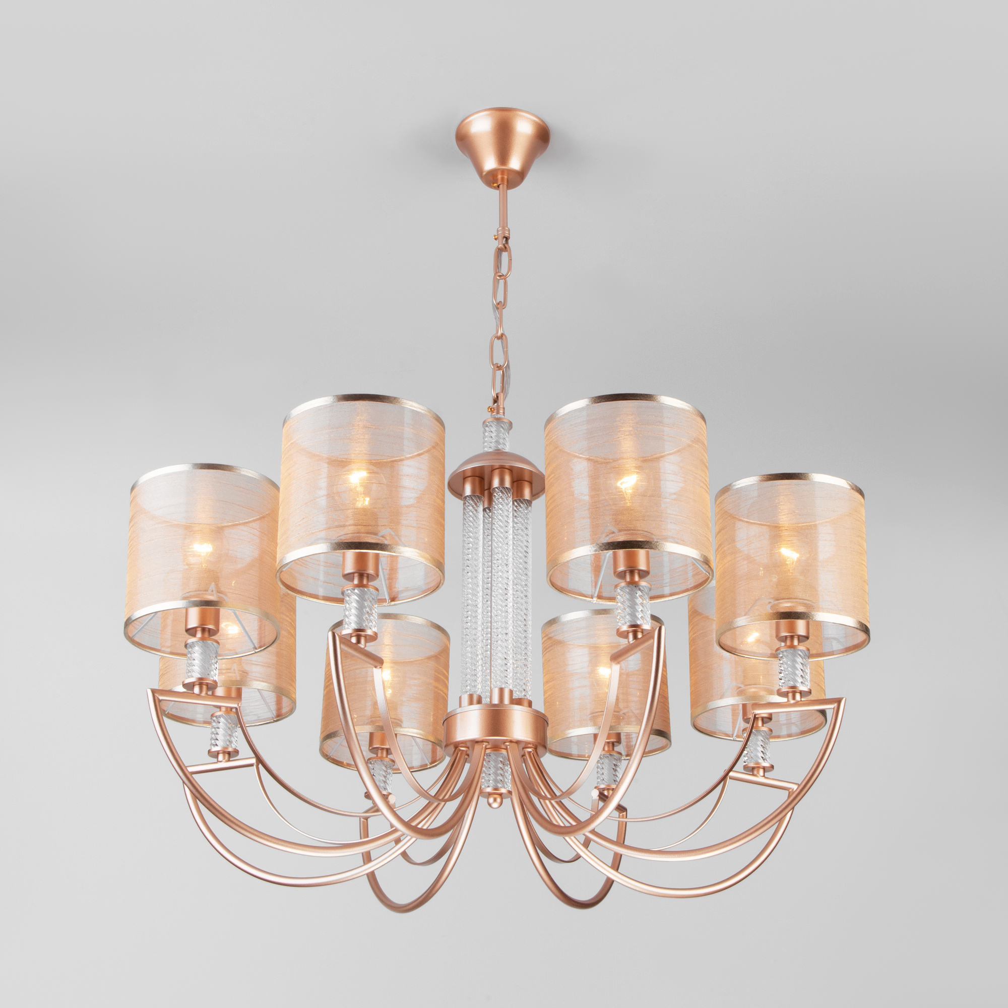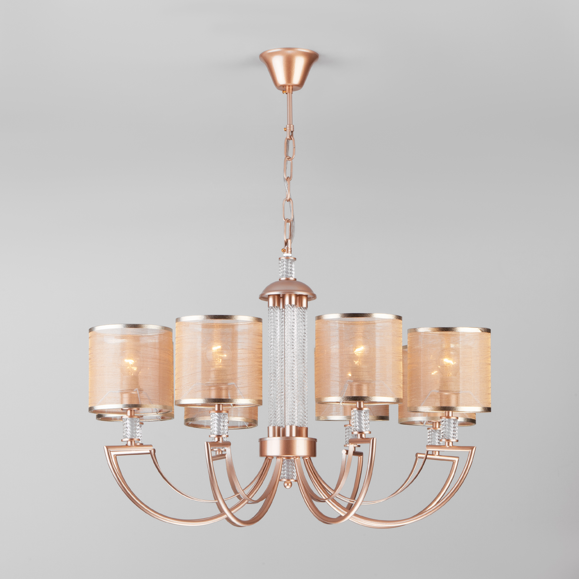 Допускается отличие страны-изготовителя, указанной в характеристиках. Линии производства могут находиться в нескольких государствах. Это не влияет на качество изготовления товара: все заводы данного бренда работают по общим стандартам, а готовые изделия проходят соответствующий контроль.Китай Коллекция Licata ЦветЦвет арматуры перламутровое золото Цвет Золото Материал арматуры Металл Цвет плафона золото Материал декора Стекло Материал плафона Ткань РазмерыВысота (мм) 960 Длина (мм) 760 Высота минимальная (мм) 460 Ширина (мм) 760 ЭлектрикаКоличество ламп (шт) 8 Цоколь E14 Мощность лампы (Вт) 40 Напряжение (В) 220 Площадь освещения 24 Дополнительная информацияСпособ крепления Крюк Степень защиты (IP) IP20 Тип подвеса На цепи -