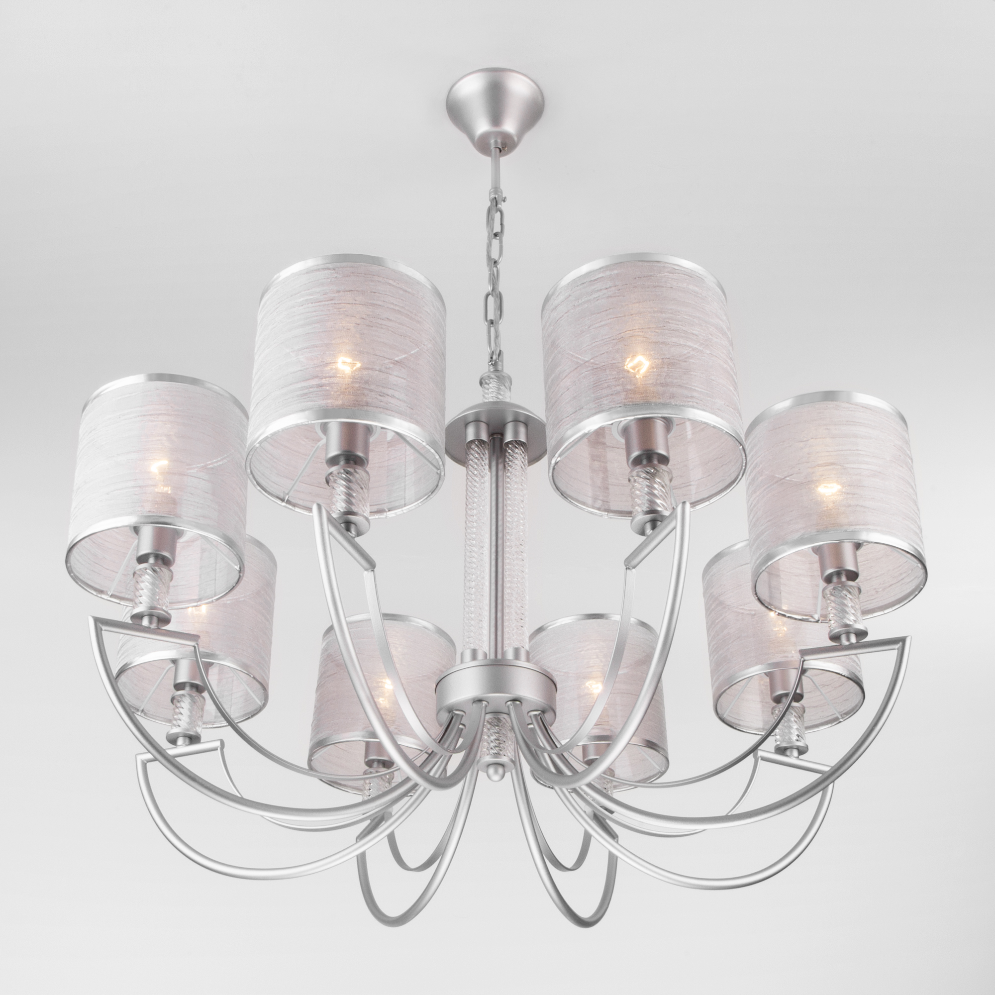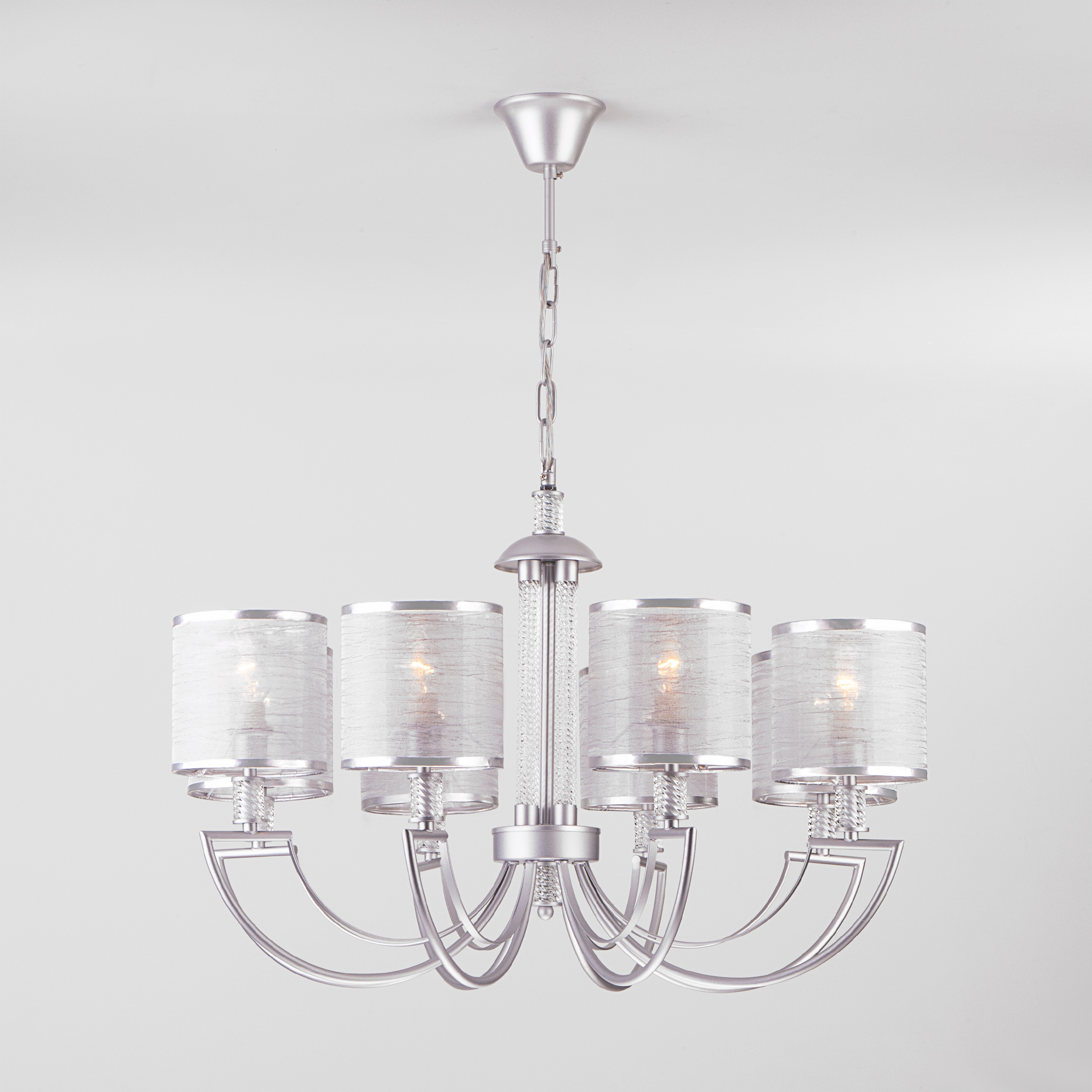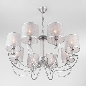 Допускается отличие страны-изготовителя, указанной в характеристиках. Линии производства могут находиться в нескольких государствах. Это не влияет на качество изготовления товара: все заводы данного бренда работают по общим стандартам, а готовые изделия проходят соответствующий контроль.Китай Коллекция Licata ЦветЦвет арматуры серебряный Цвет Серебро Материал арматуры Металл Цвет плафона серебряный Материал декора Стекло Материал плафона Ткань РазмерыВысота (мм) 960 Длина (мм) 760 Высота минимальная (мм) 460 Ширина (мм) 760 ЭлектрикаКоличество ламп (шт) 8 Цоколь E14 Мощность лампы (Вт) 40 Напряжение (В) 220 Площадь освещения 24 Дополнительная информацияСпособ крепления Крюк Степень защиты (IP) IP20 Тип подвеса На цепи -
