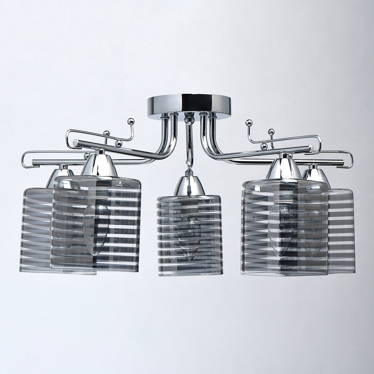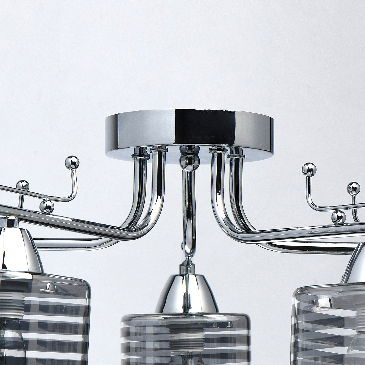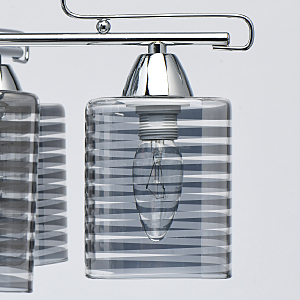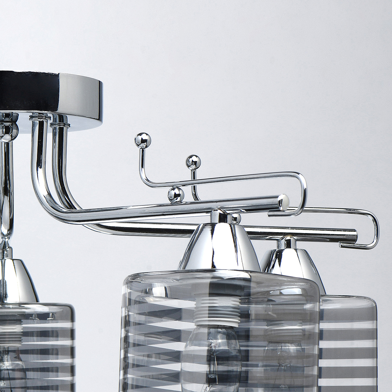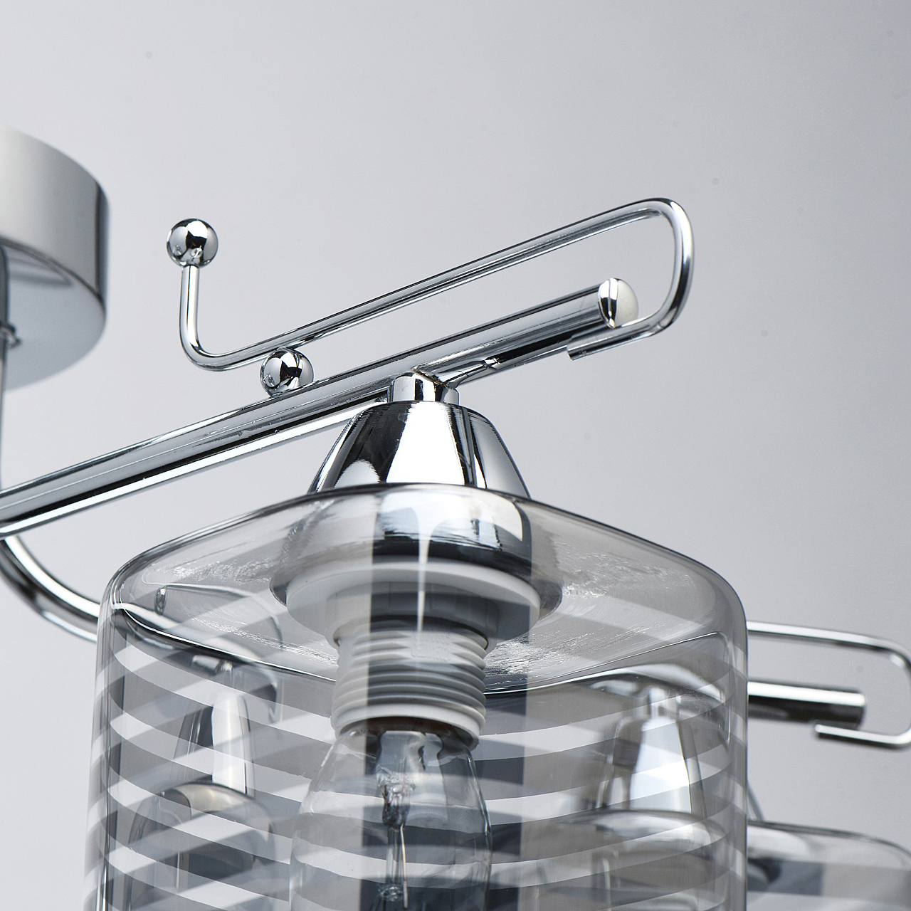 Геометрический дизайн декора рожков и плафонов актуален для современных интерьеров.Плафон в полоску является трендом сезона.Компактная высота светильника актуальна для стандартной высоты потолка.Заменяемые источники света удобны в эксплуатации.