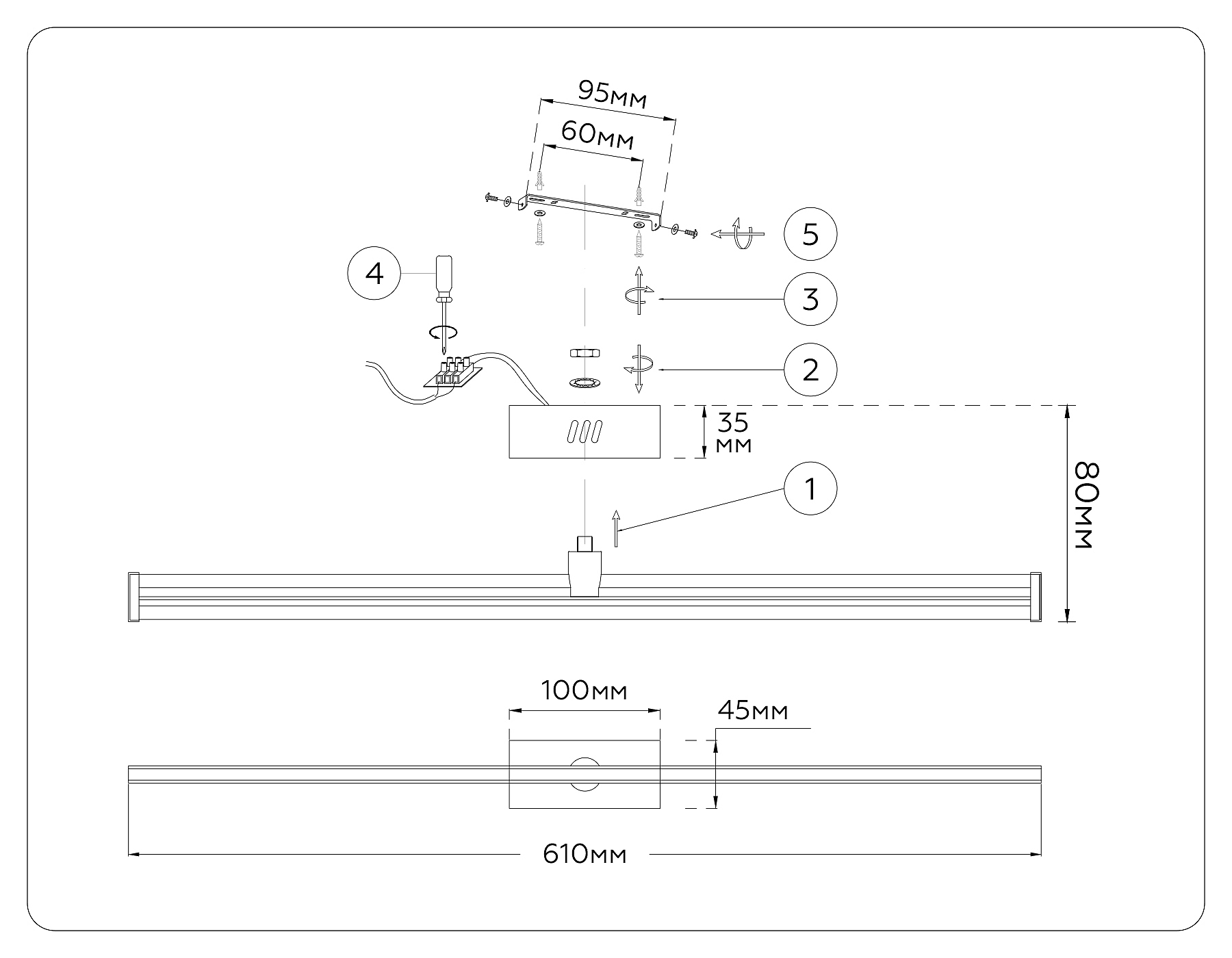 Допускается отличие страны-изготовителя, указанной в характеристиках. Линии производства могут находиться в нескольких государствах. Это не влияет на качество изготовления товара: все заводы данного бренда работают по общим стандартам, а готовые изделия проходят соответствующий контроль.Россия Коллекция LineTech ЦветЦвет арматуры Черный Цвет Черный Материал арматуры Металл, Пластик Цвет плафона Белый Материал плафона Пластик РазмерыВысота (мм) 80 Длина (мм) 610 Ширина (мм) 45 Диаметр основания 100*45 ЭлектрикаКоличество ламп (шт) 1 Цоколь LED Мощность лампы (Вт) 14 Напряжение (В) 220 Световой поток 1120 Срок службы, ч 50000 Цветовая температура 3000-6400 Дополнительная информацияСпособ крепления Планка Степень защиты (IP) IP20 Техническая оссобеность Полностью светодиодная, Регулировка цветовой температуры -