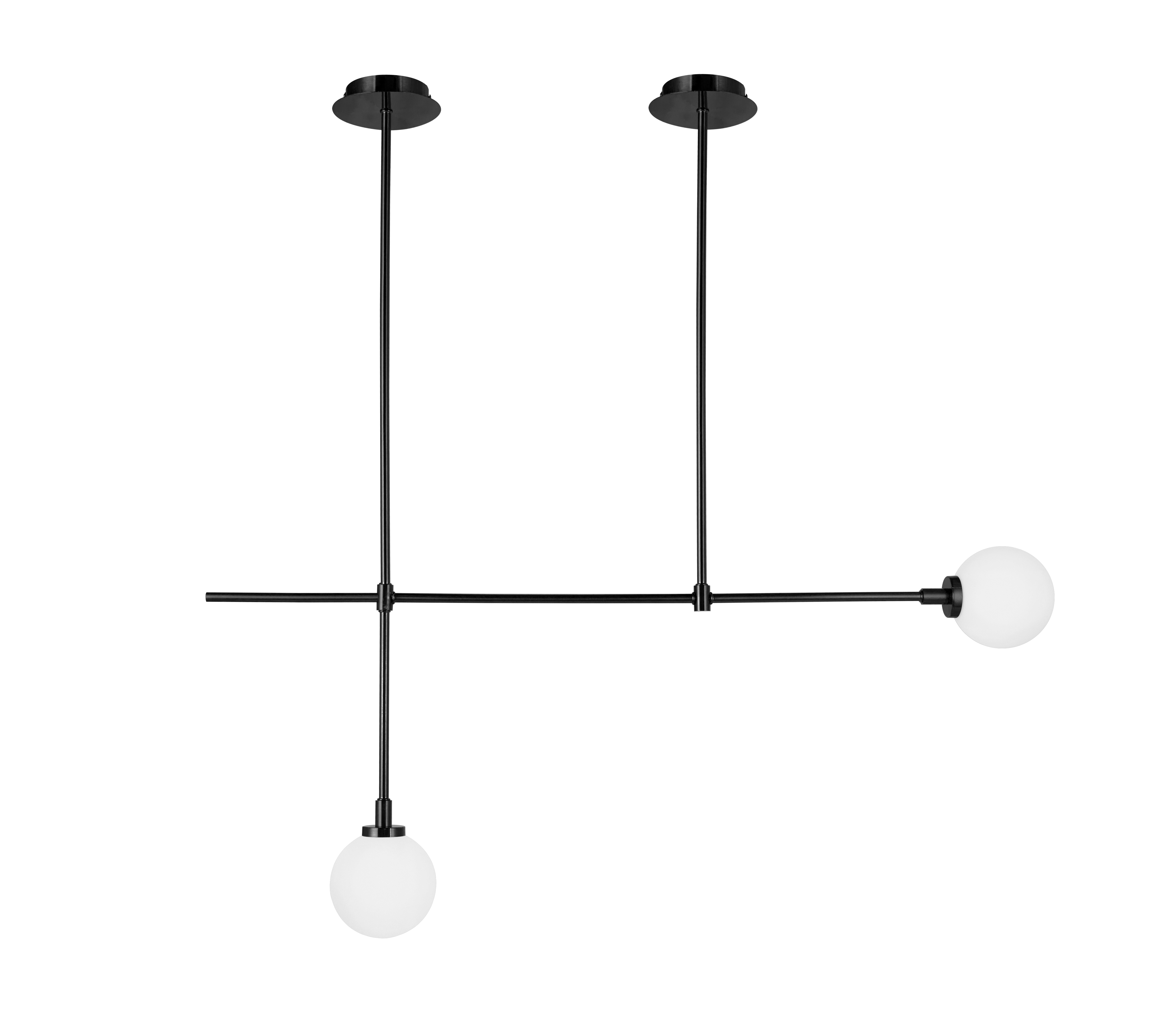 <p>Простой и лаконичный подвесной светильник Lingdal в стиле лофт. Стеклянные матовые плафоны расположенных в разных направлениях мягко и равномерно рассеивают свет. Металлический каркас состоящий из нескольких труб надежно крепится к потолку с помощью 2-х крепежных планок. Практичный и немного брутальный образ светильника идеально впишется в интерьер в стиле лофт или минимализм. Данная модель высотой 1 м лучше всего будет смотреться в комнатах с высокими потолками.</p>