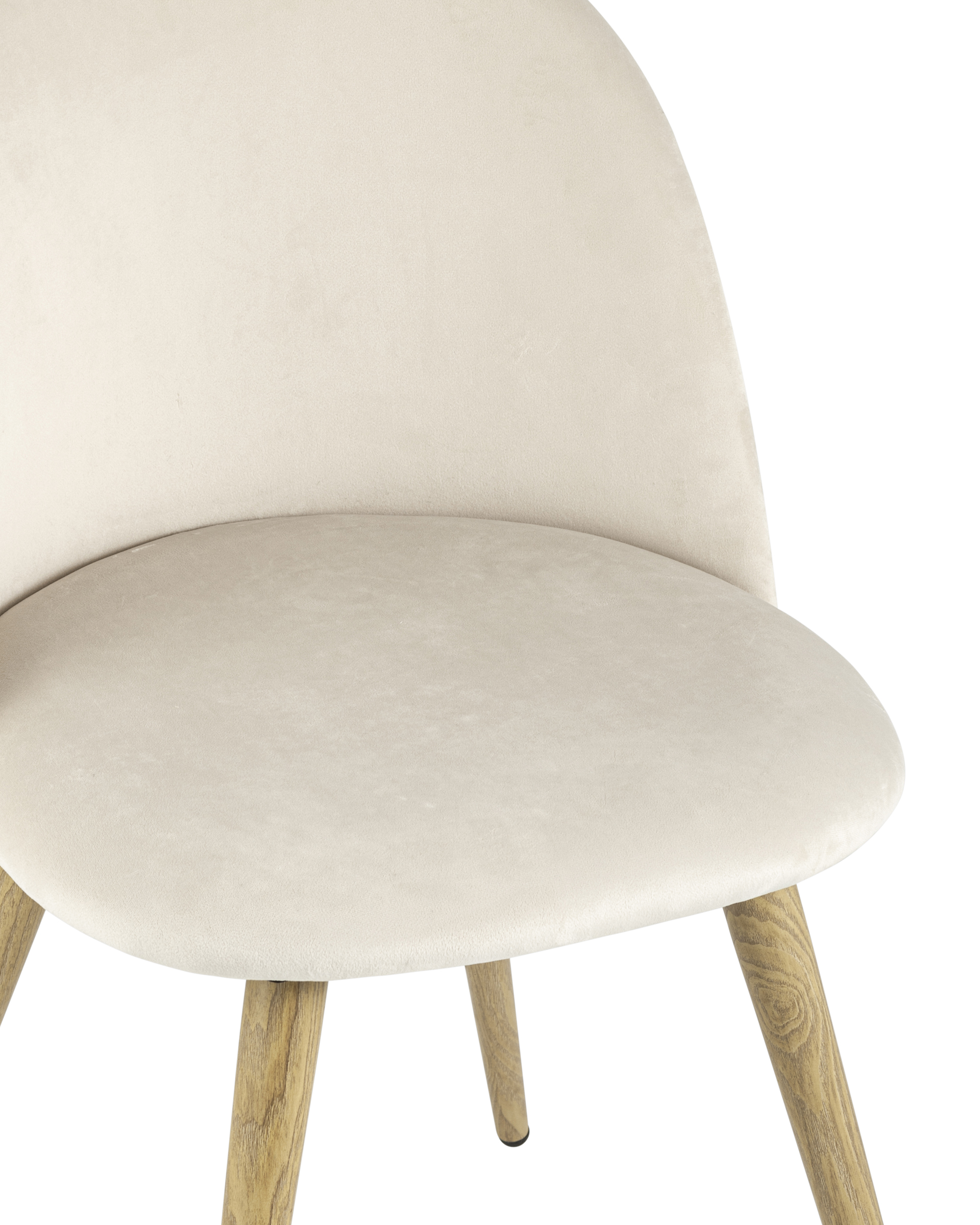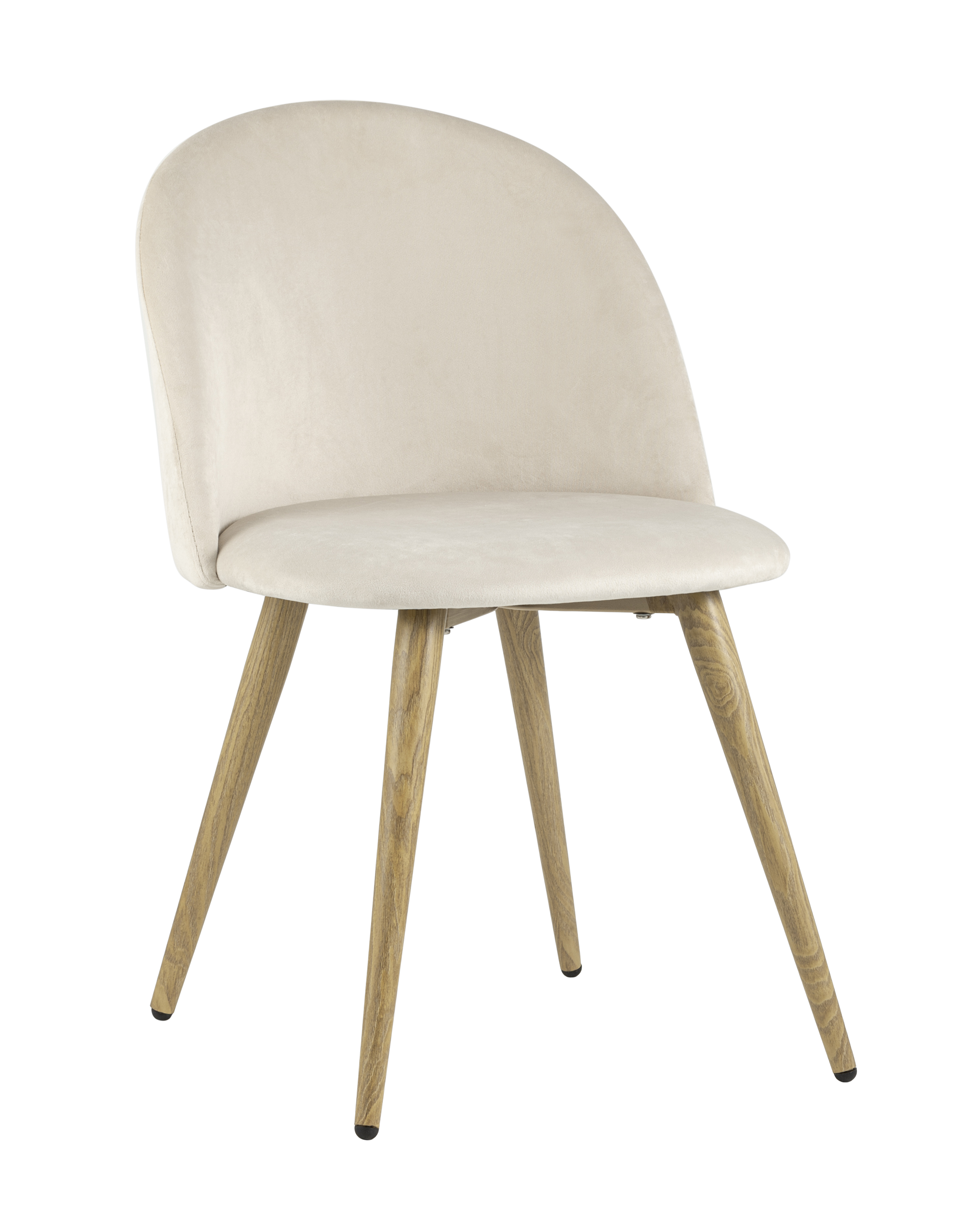 Комплект из четырех стульев Лион кремовый, сиденье и спинка велюр, каркас из оцинкованного металла с принтом под натуральное дерево