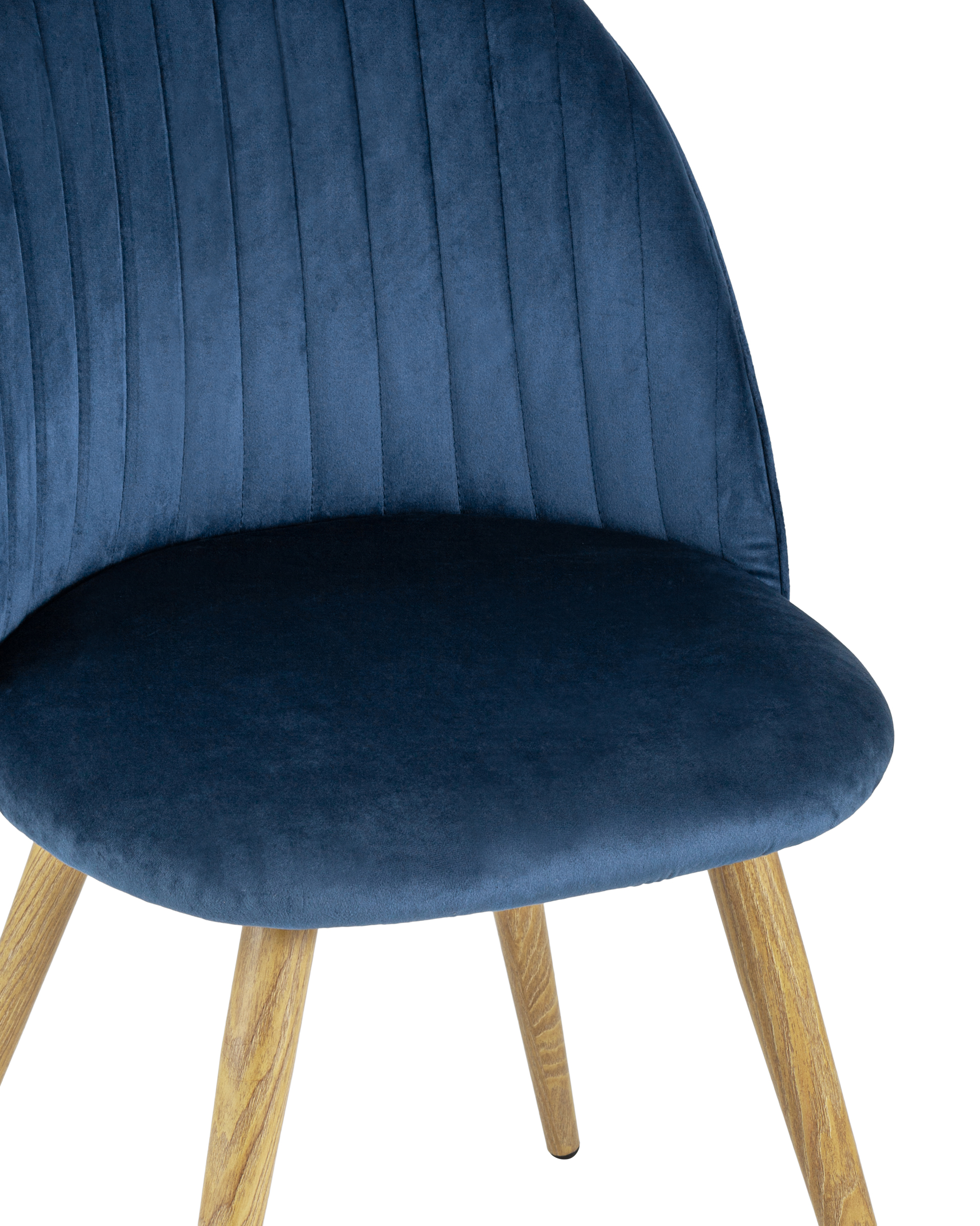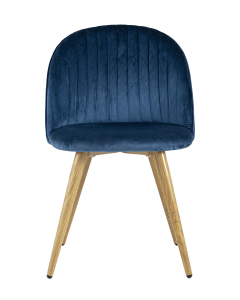 Комплект из четырех стульев Лион Страйпс голубой обивка из велюра спинка с вертикальной прострочкой каркас из оцинкованного металла с принтом под натуральное дерево